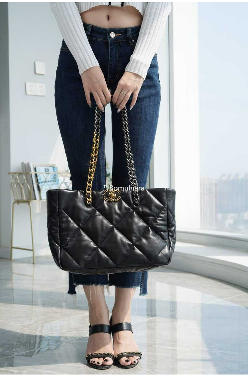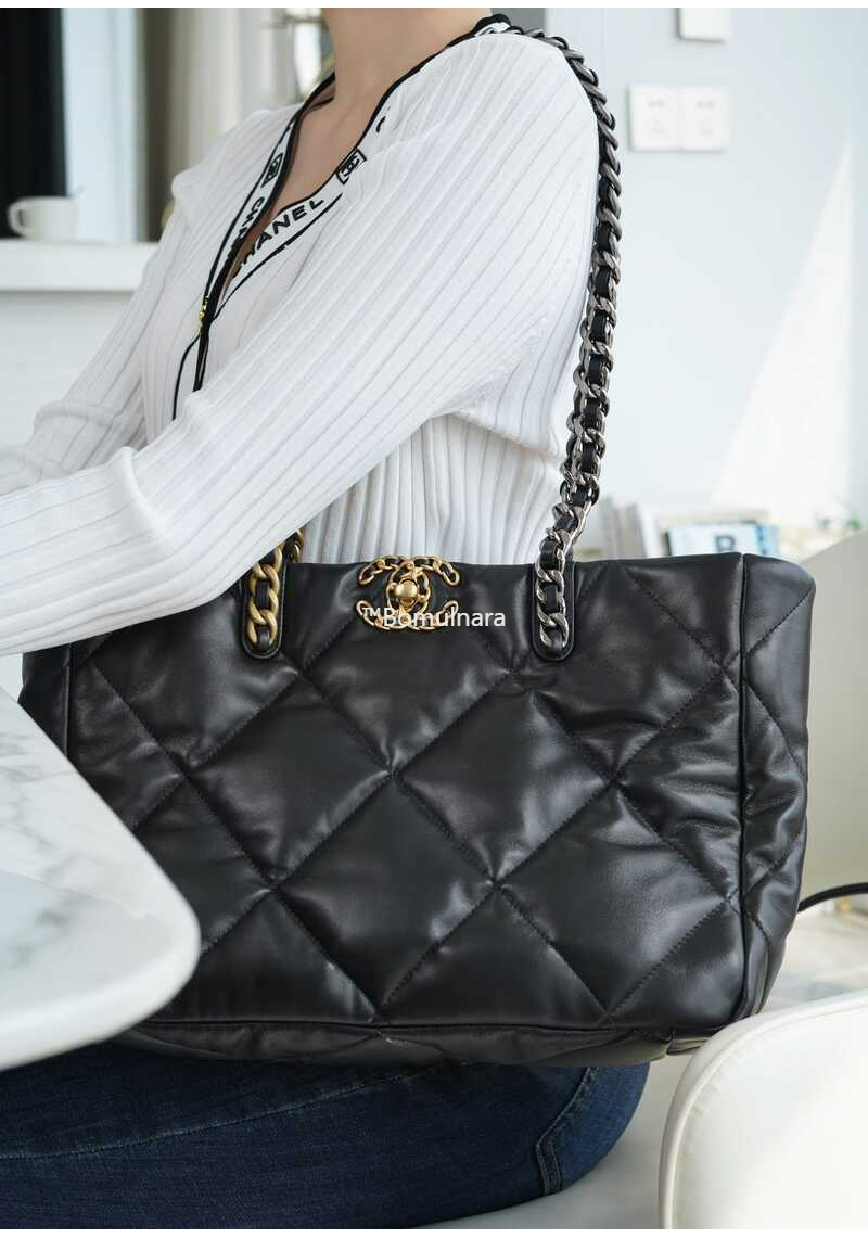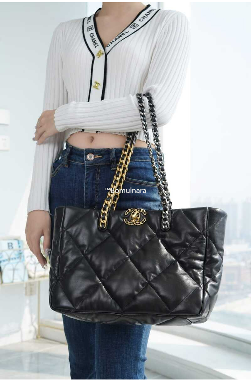 CHANEL-AS3660 샤넬 블랙 이스트 웨스트 19 쇼핑백