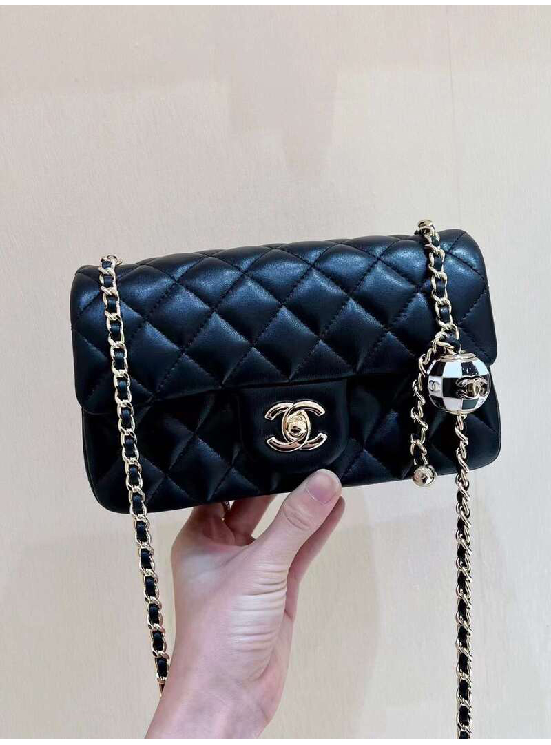 CHANEL-AS1787 샤넬 블랙 램스킨 축구볼 뉴미니