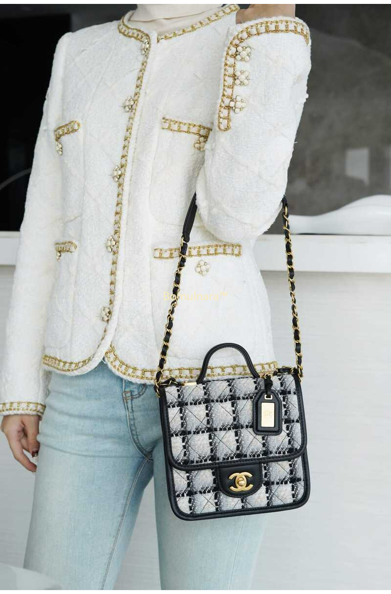 [스페셜오더]CHANEL-AS3652 샤넬 아이보리 트위드 스퀘어 스몰 탑 핸들 플랩 백