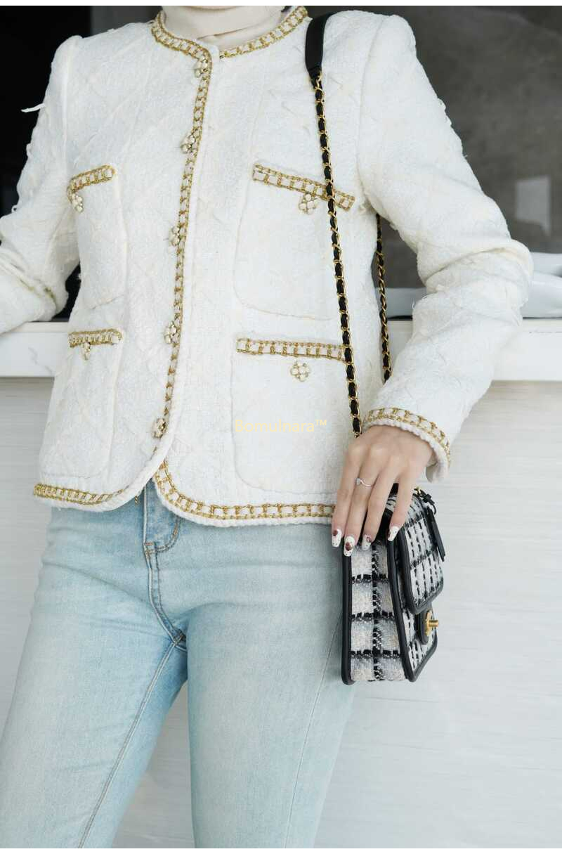 코튼 & 울 트위드 / 카프스킨 가죽 트리밍