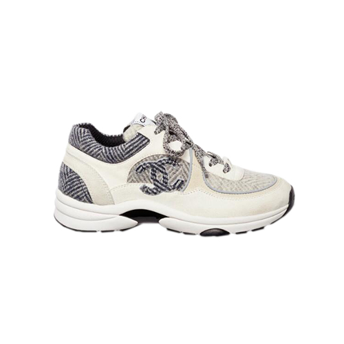 CHANEL-G39597 샤넬 화이트/그레이 스웨이드 카프스킨 스니커즈 여성용