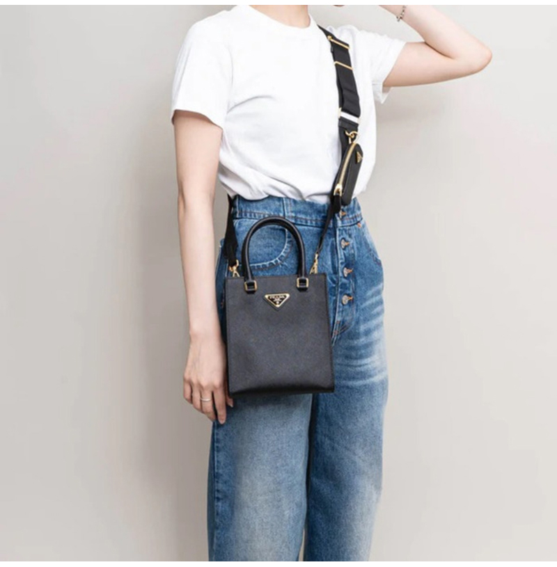 [스페셜오더]PRADA-1BA333 프라다 블랙 소형 트라이 앵글 로고 사피아노 핸드백