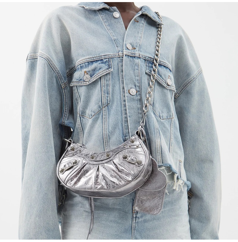 [스페셜오더]BALENCIAGA-712813 발렌시아가 실버 메탈릭 Le Cagole XS 체인 숄더백 24CM