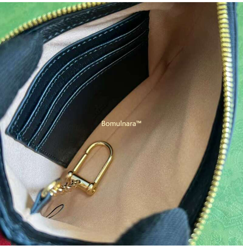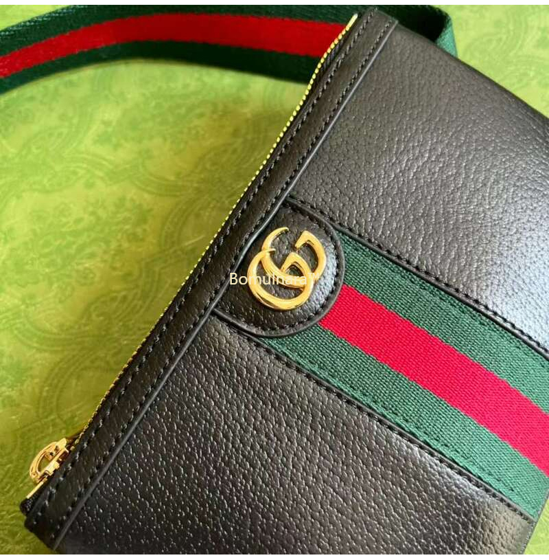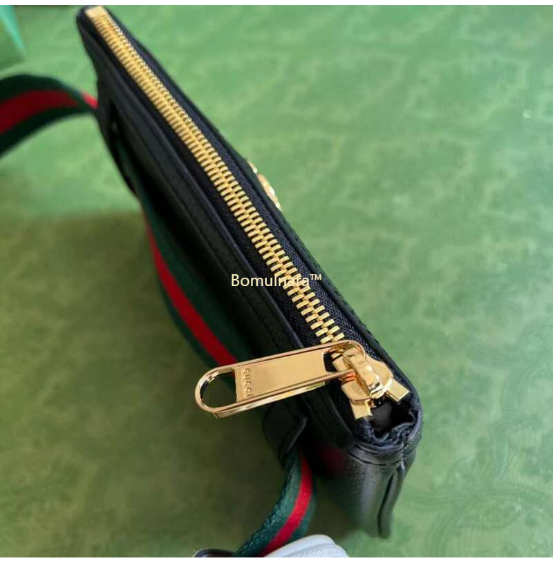 -파우치: 그린/레드 웹이 있는 검은색 가죽