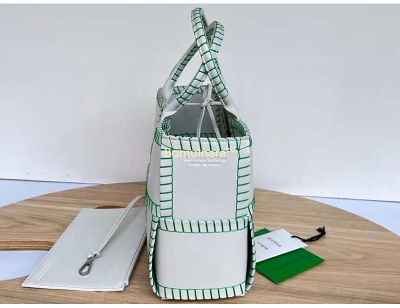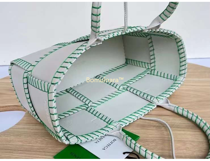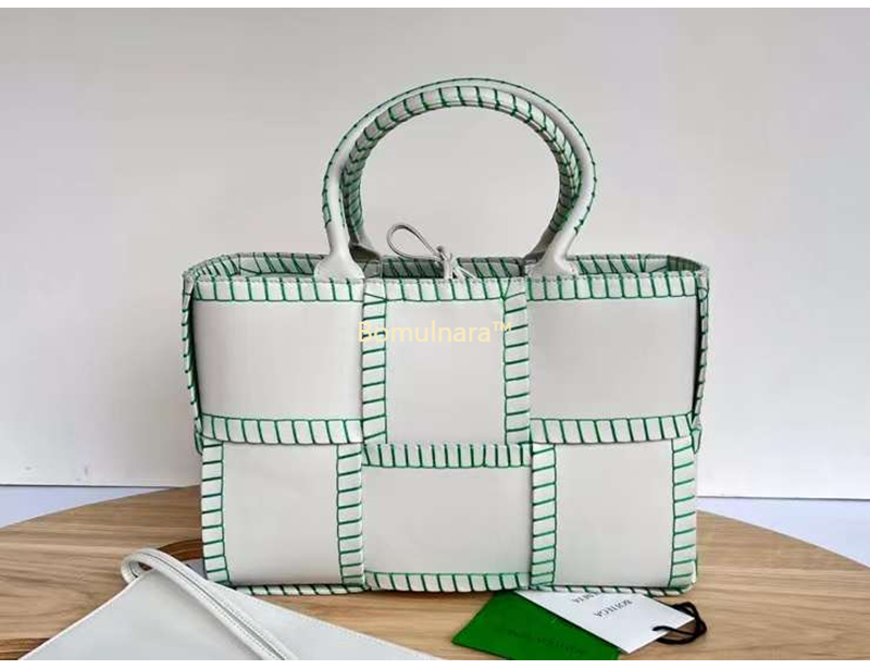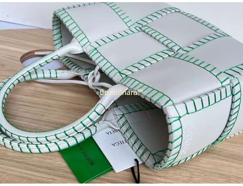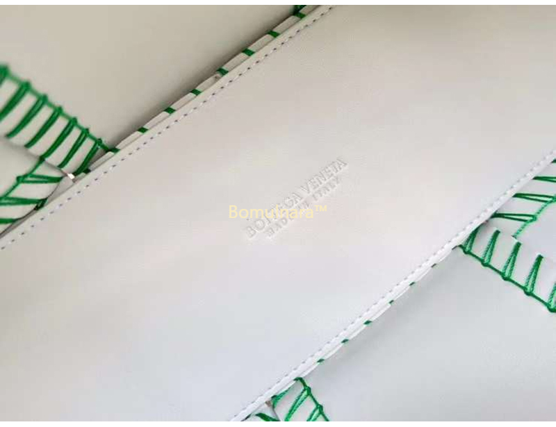 [스페셜오더]BOTTEGA VENETA-691401 보테가 베네타 화이트/패럿 그린 스티치 장식 아르코 스몰 토트 백 30CM