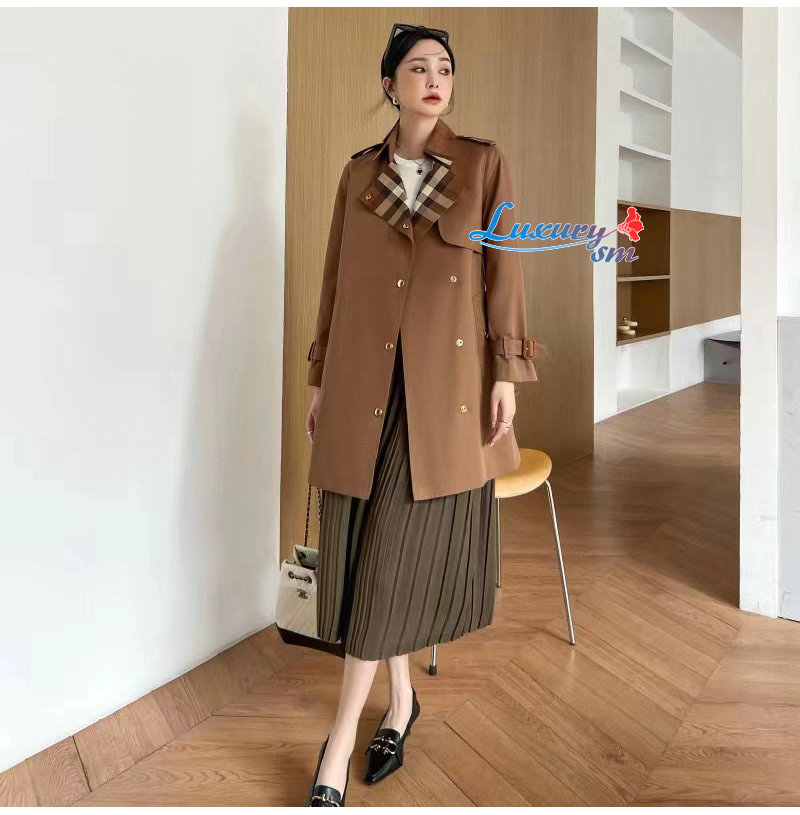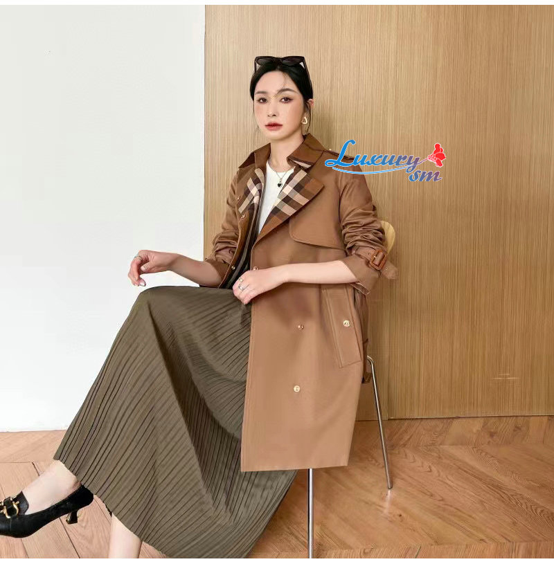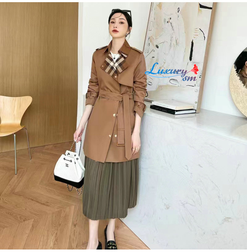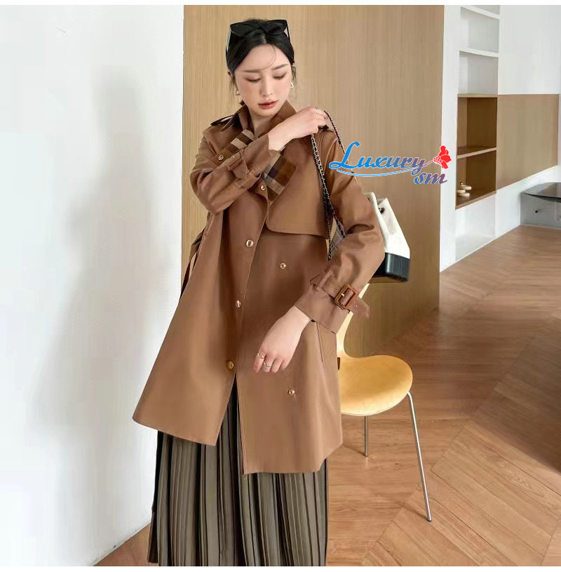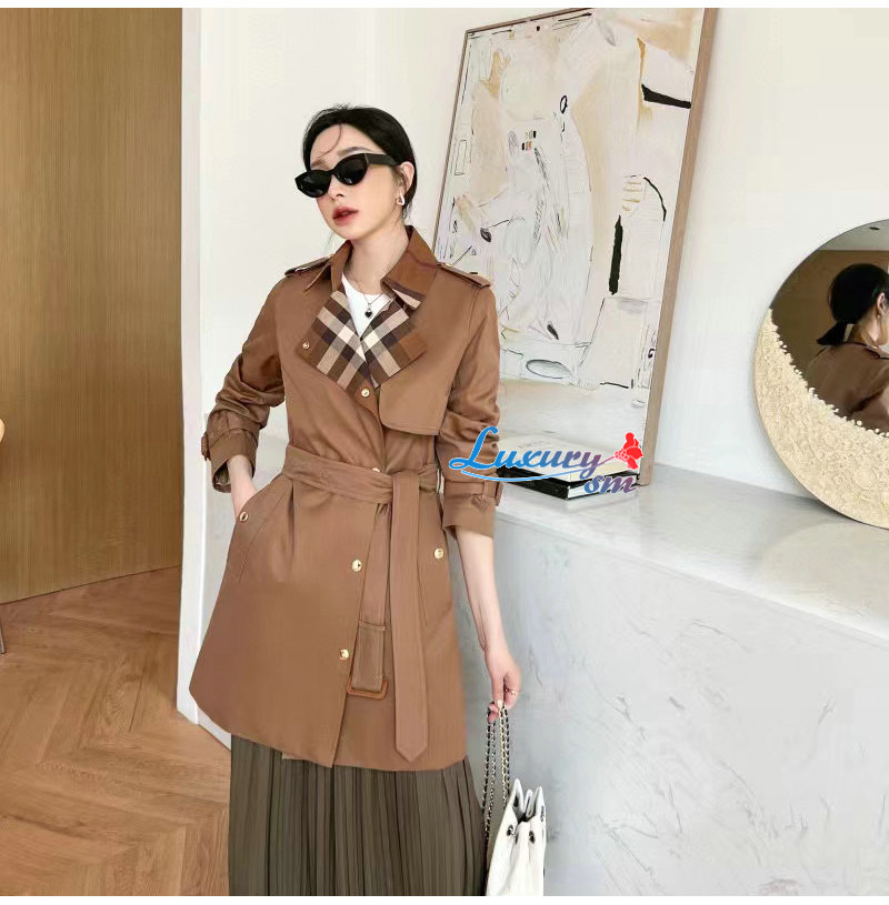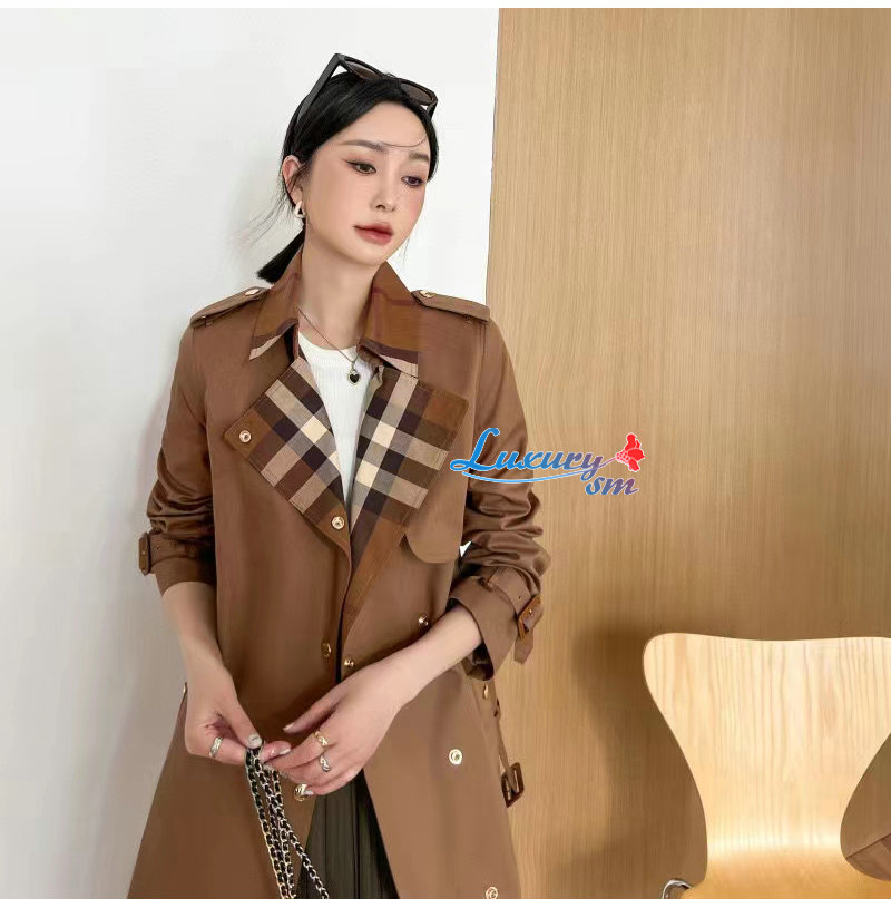 BURBERRY-80649351 버버리 캐러멜 체크 패널 코튼 개버딘 트렌치코트 여성용
