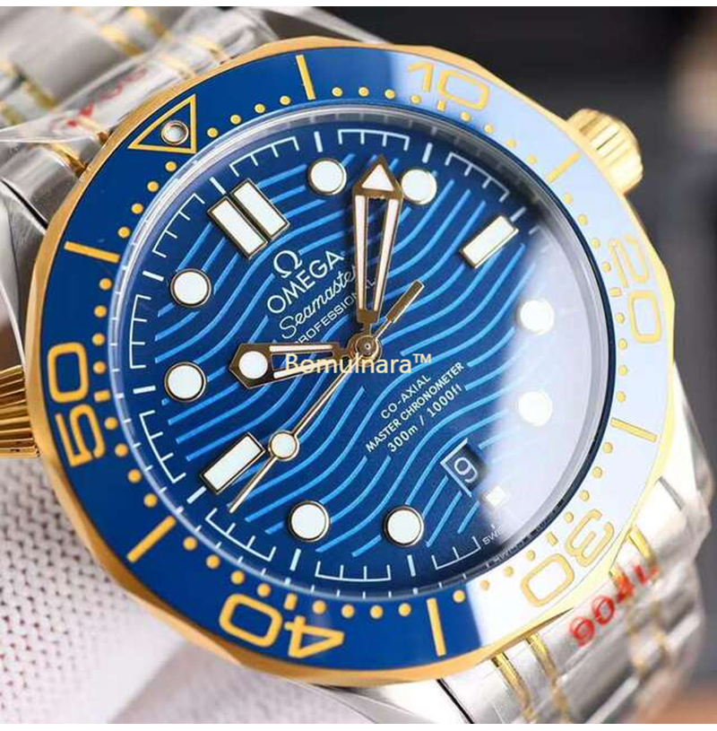 [스페셜오더][V10 Factory]OMEGA-오메가 씨마스터 다이버 300M 코 액시얼 스틸 블루 옐로우 골드 42 904L