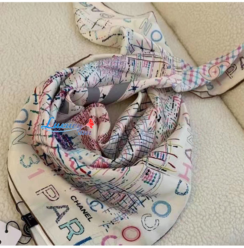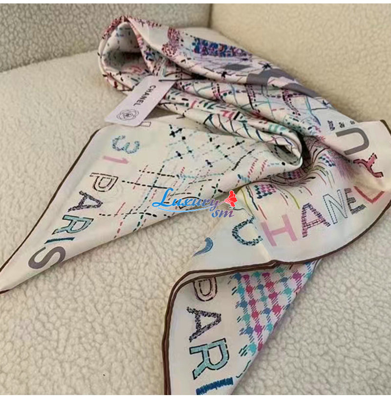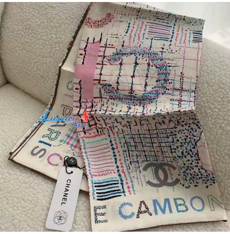 CHANEL-AA8619 샤넬 에크루 실크 트윌 스퀘어 스카프