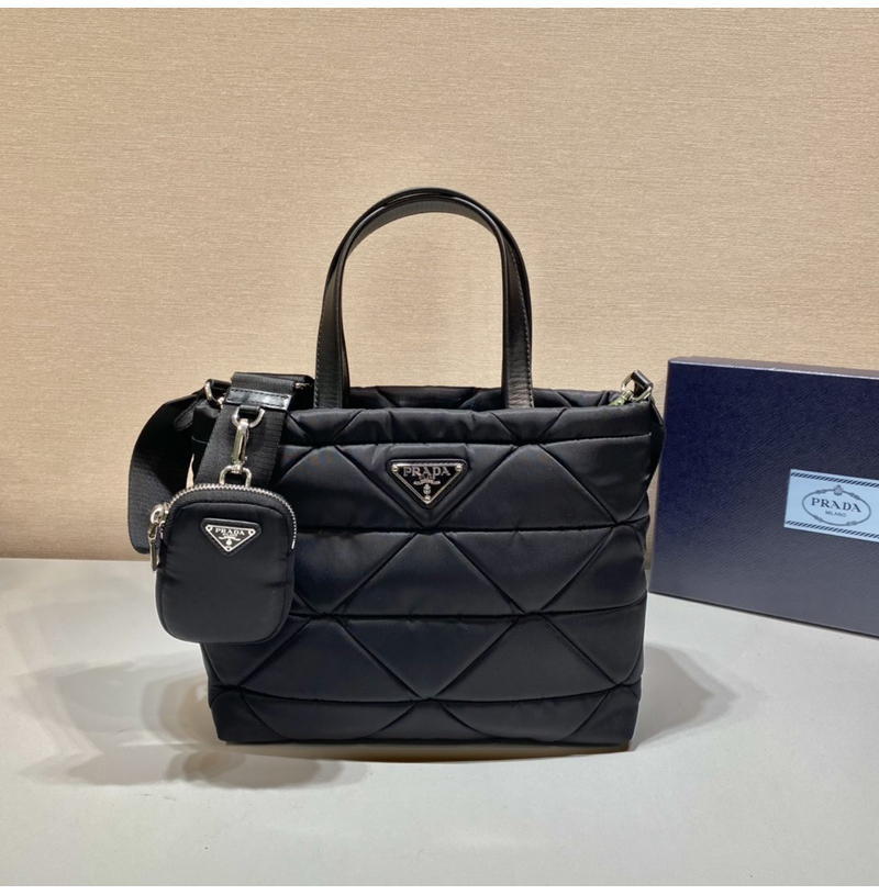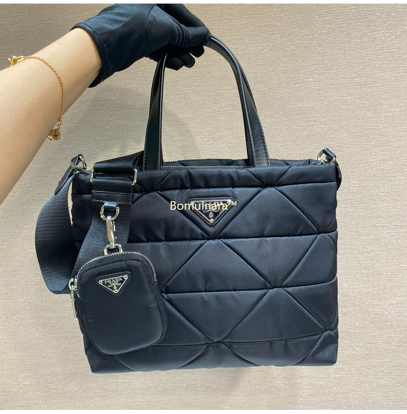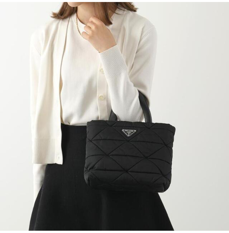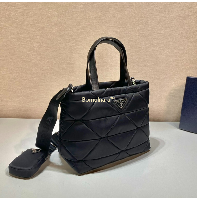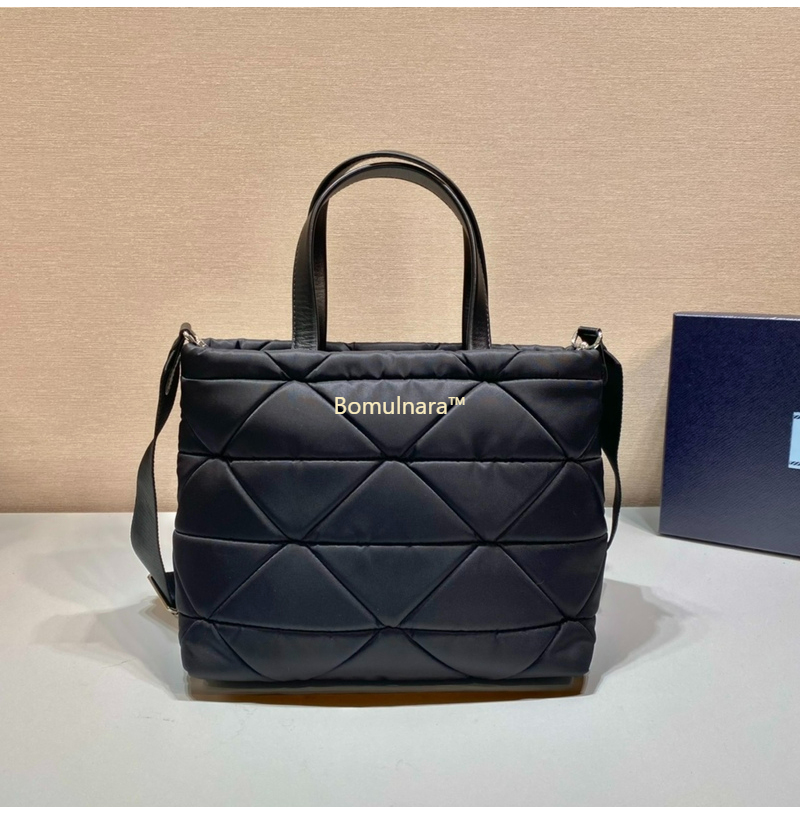 [스페셜오더]PRADA-1BG373 프라다 블랙 리-나일론 트라이앵글 퀼팅 패딩 토트 백