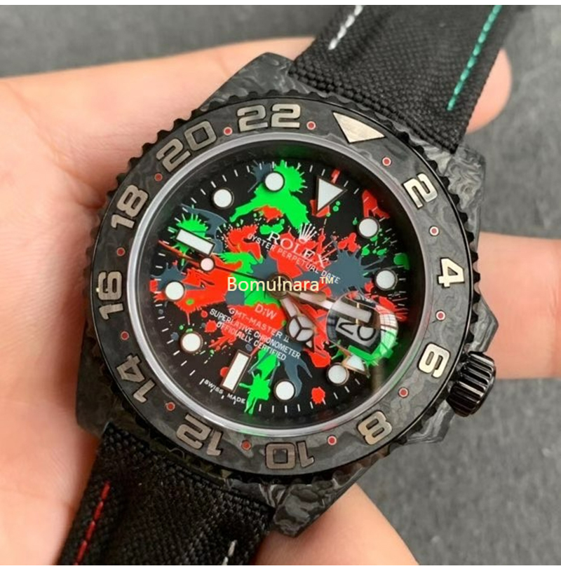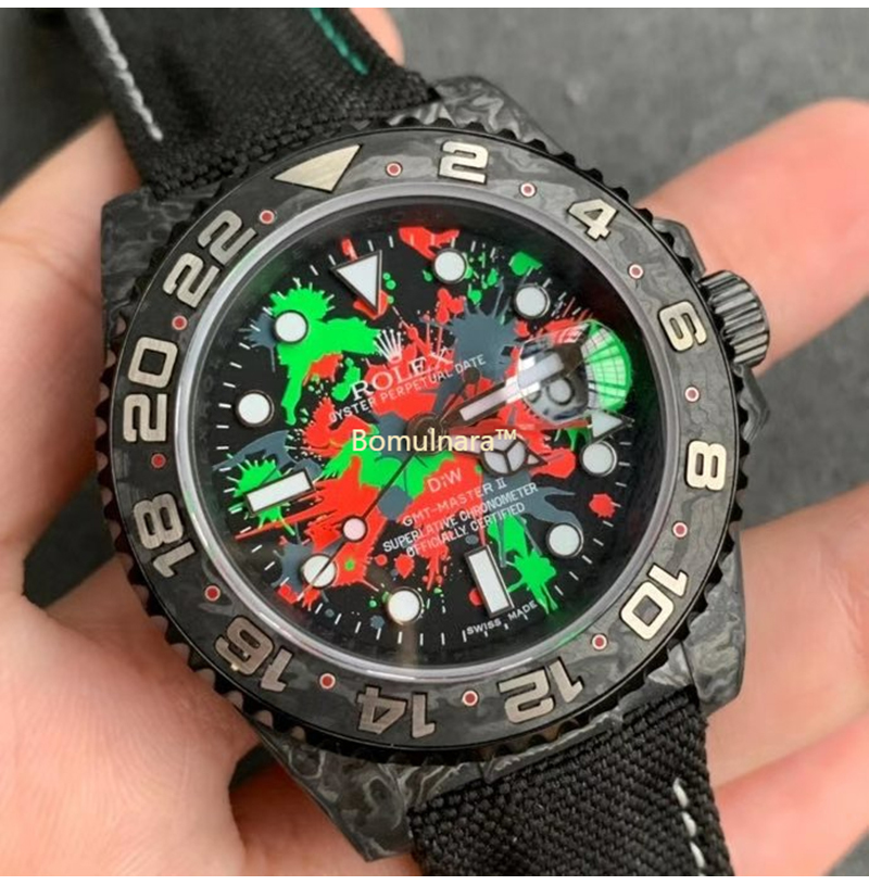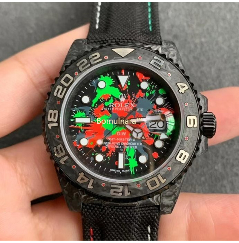 [스페셜오더]ROLEX x DiW-126710 롤렉스 GMT-마스터 II 카본 케이스 및 베젤 MOTLEY GMT 가격 : 1,280,000원