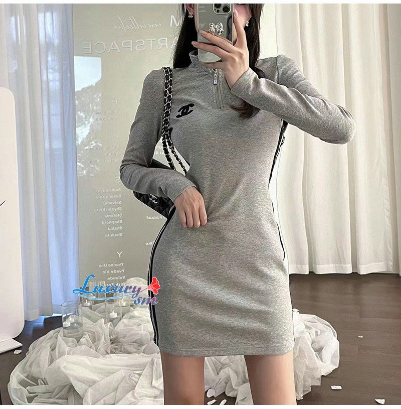 CHANEL-022711 샤넬 그레이 코튼 CC 로고 드레스