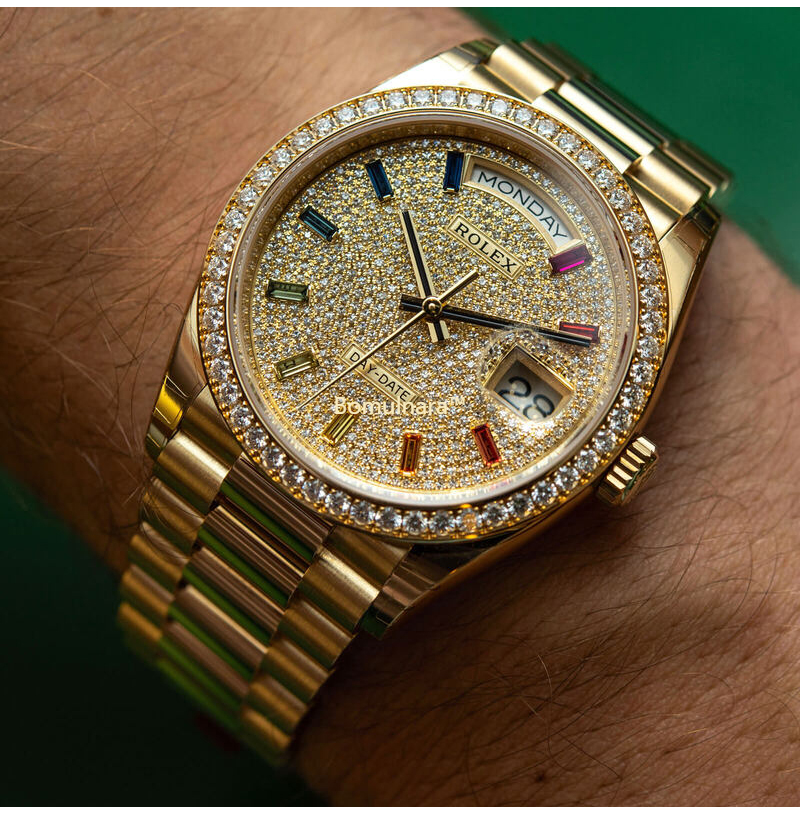 [스페셜오더][RA Factory]ROLEX-128238 롤렉스 데이-데이트 옐로우 골드 다이아몬드 파베 다이얼 36mm
