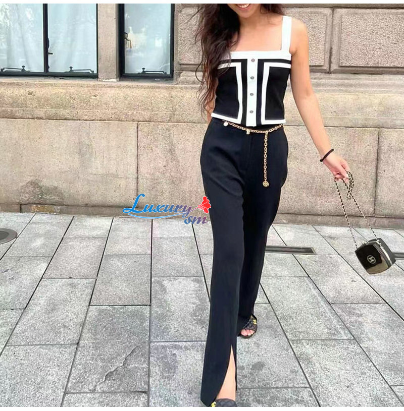 LOUIS VUITTON-02271 루이비통 블랙 울 메탈 트리밍 팬츠 여성용