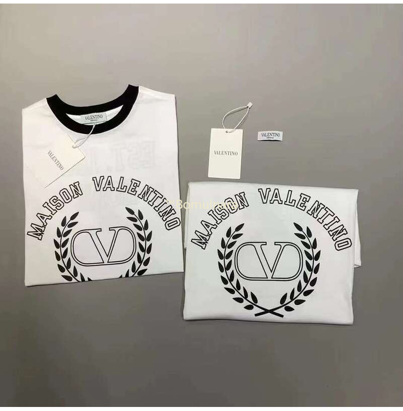 VALENTINO-발렌티노 화이트 로고 크루넥 티 셔츠