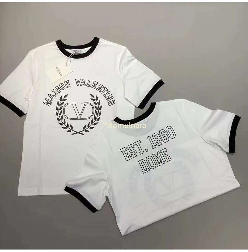 VALENTINO-발렌티노 화이트 로고 프린트 크루넥 티 셔츠 여성