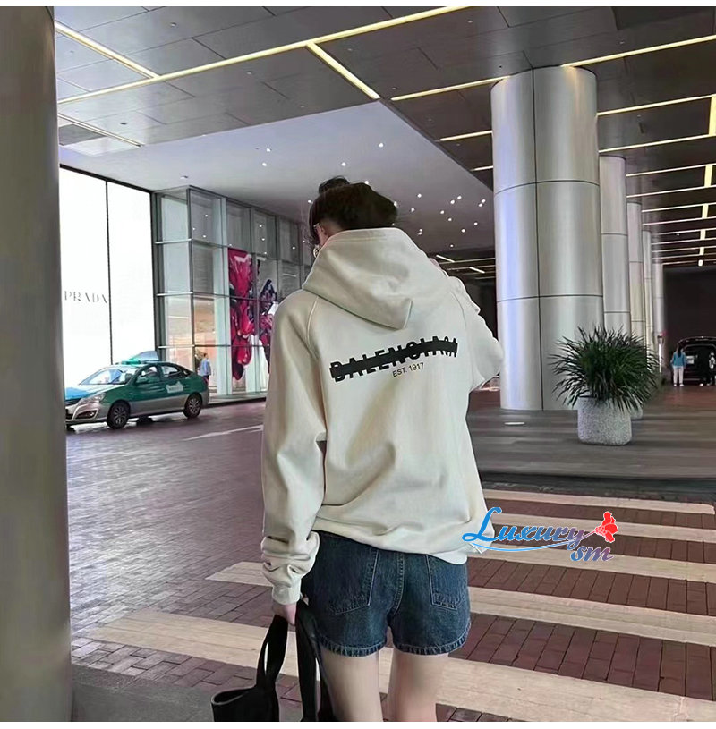 BALENCIAGA-03091 발렌시아가 화이트 프린트 장식 후드 티셔츠 남여공용