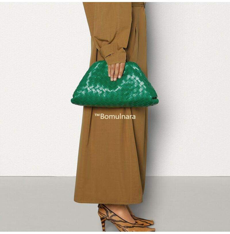 가죽 소재를 인트레치아토 위빙으로 완성한 클러치
