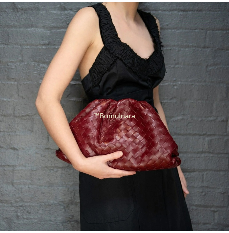 가죽 소재를 인트레치아토 위빙으로 완성한 클러치