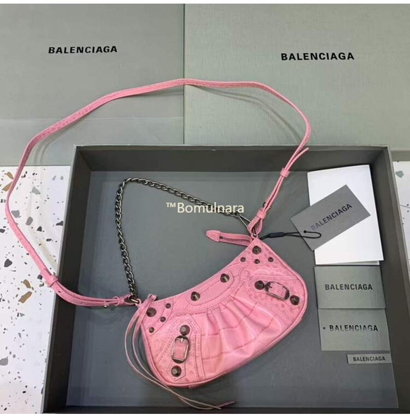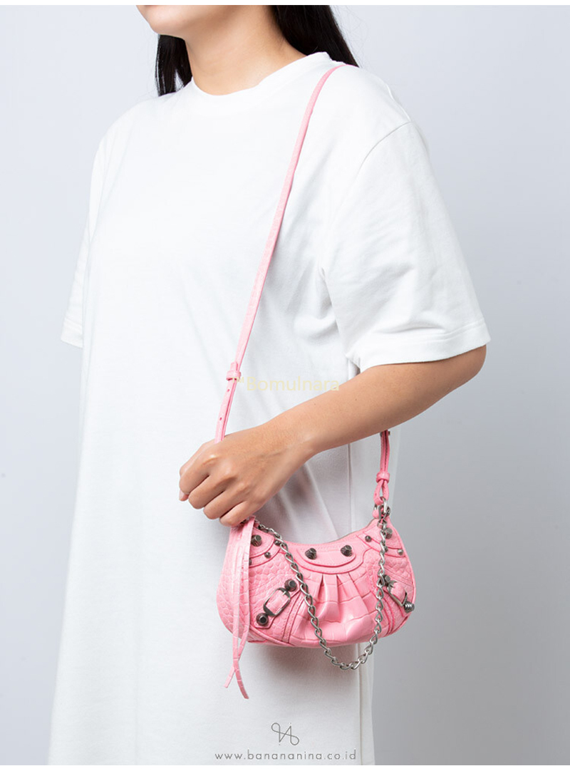 [스페셜오더]BALENCIAGA-695814 발렌시아가 핑크 크로커다일 엠보싱 LE CAGOLE MINI 체인 숄더백
