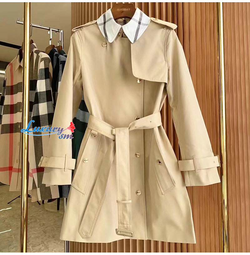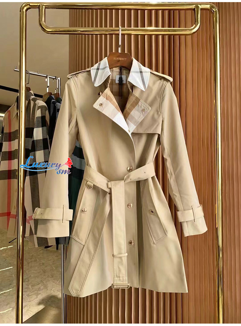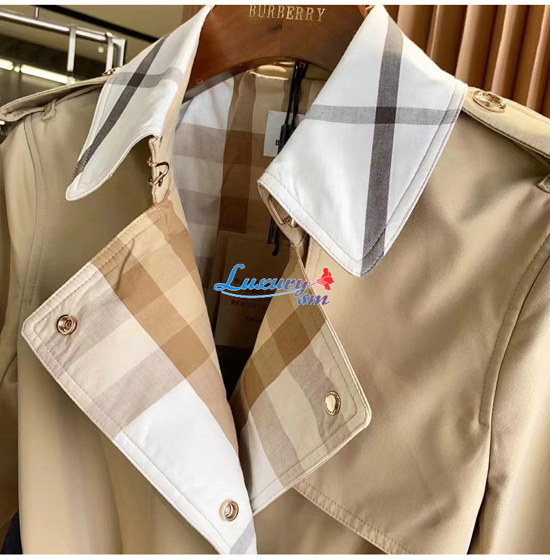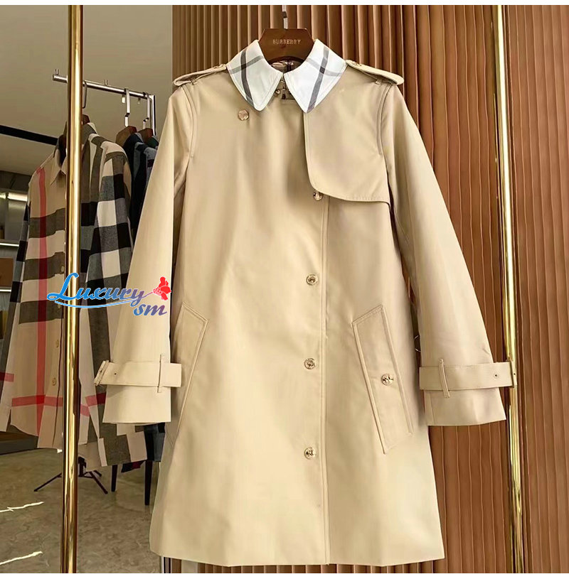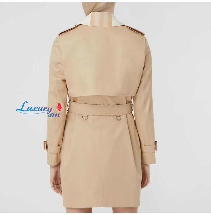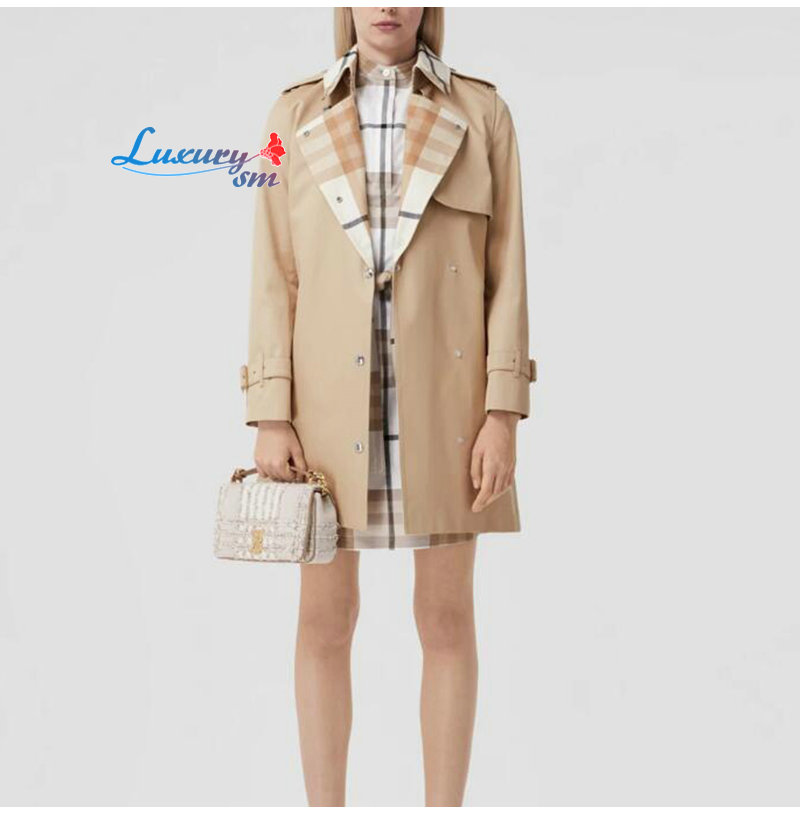 BURBERRY-80569471 버버리 소프트 폰 체크 패널 코튼 개버딘 트렌치코트 여성용