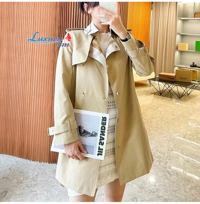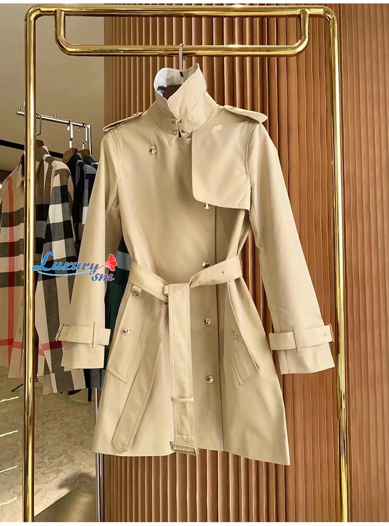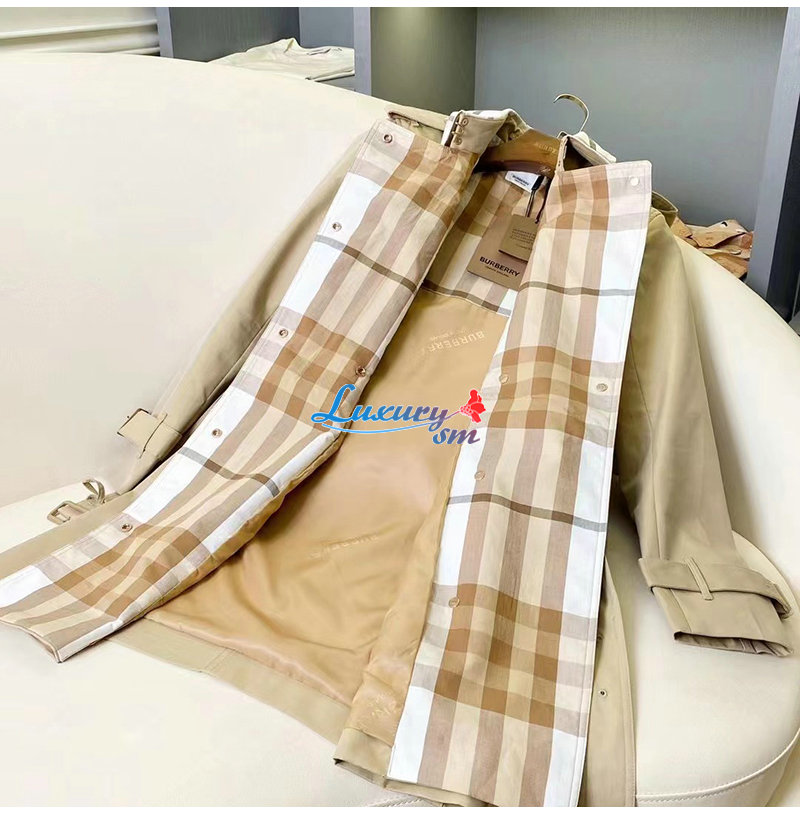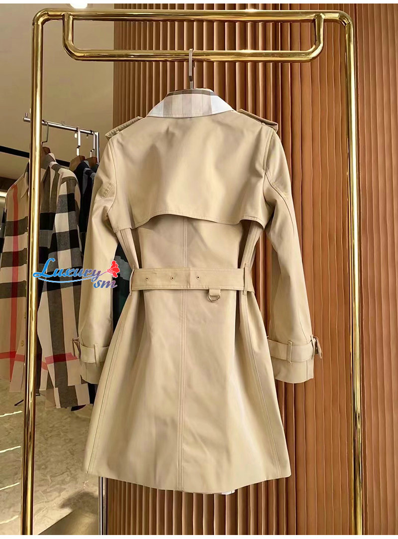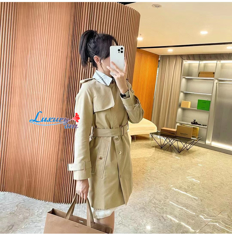 BURBERRY-80569471 버버리 소프트 폰 체크 패널 코튼 개버딘 트렌치코트 여성용