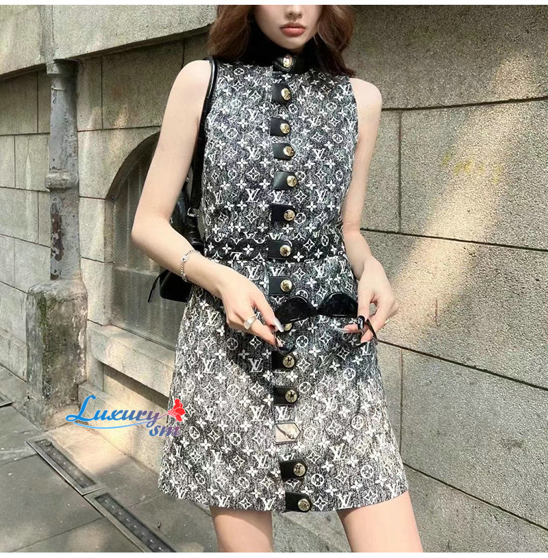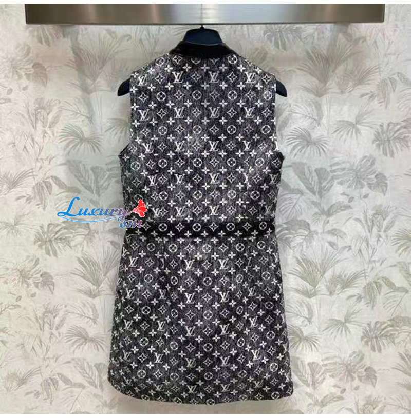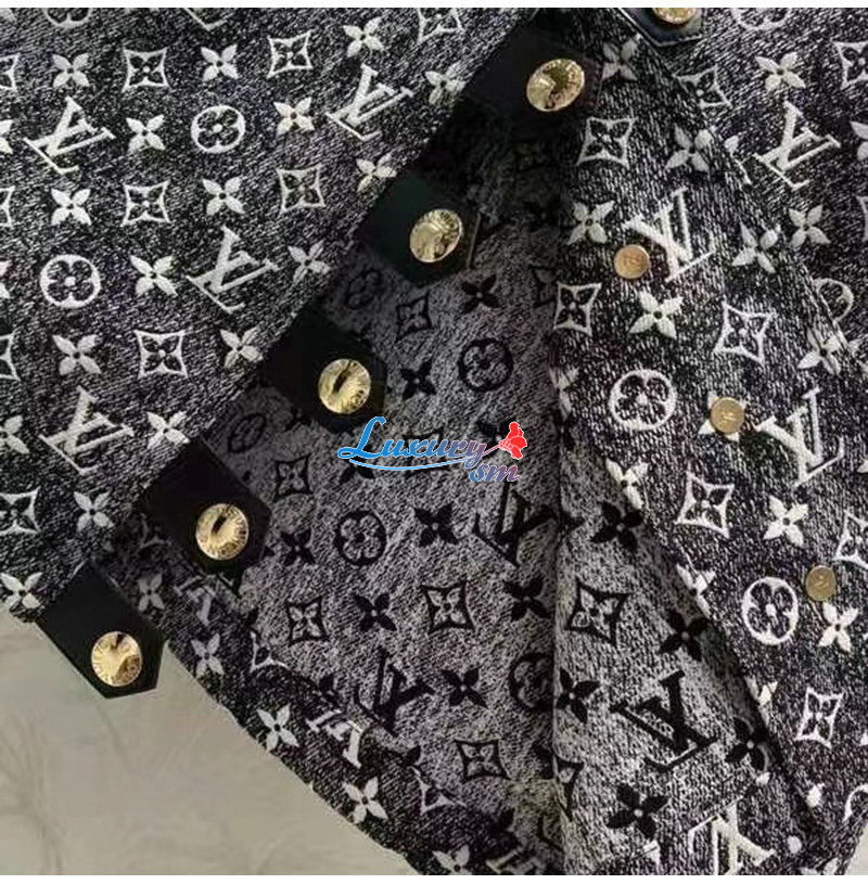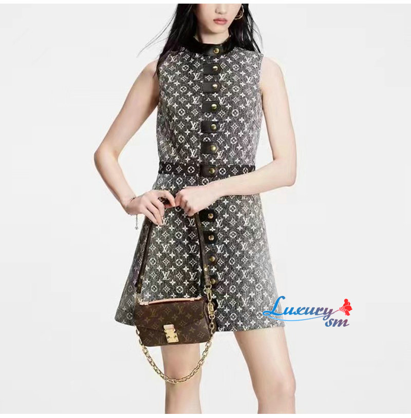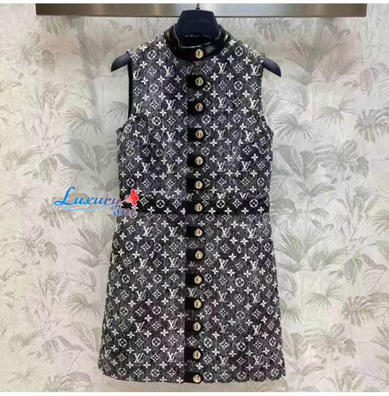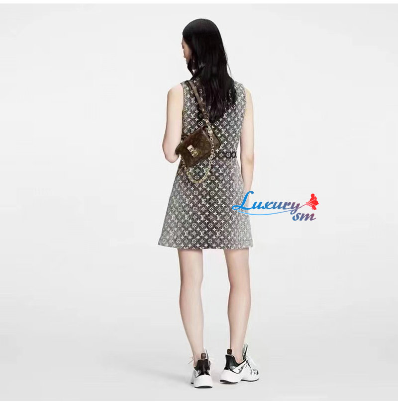 LOUIS VUITTON-1AAUPK 루이비통 그레이 모노그램 데님 버튼 탭 드레스