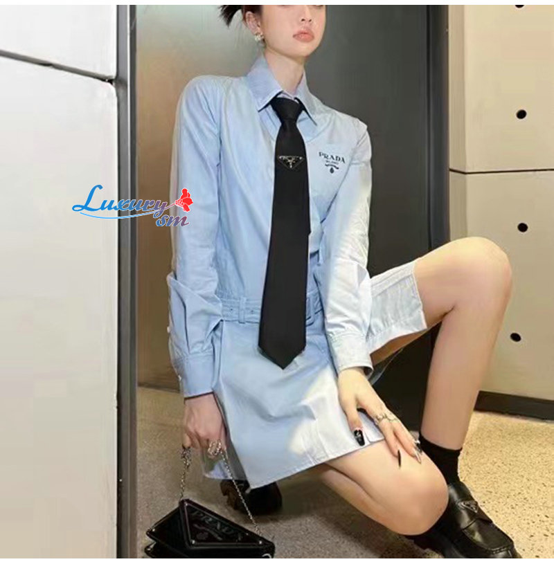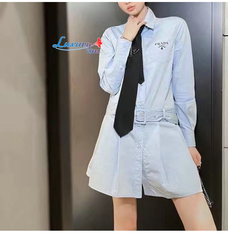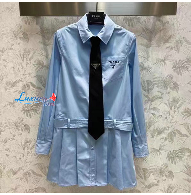 PRADA-03111 프라다 블루 트라이앵글 로고 원피스
