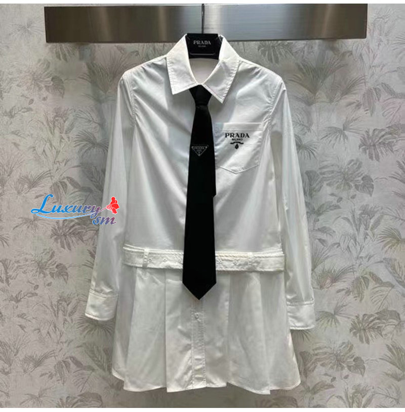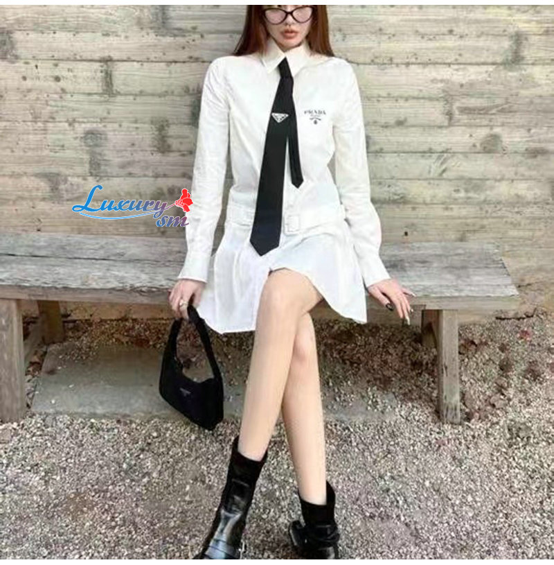 PRADA-03112 프라다 화이트 트라이앵글 로고 원피스