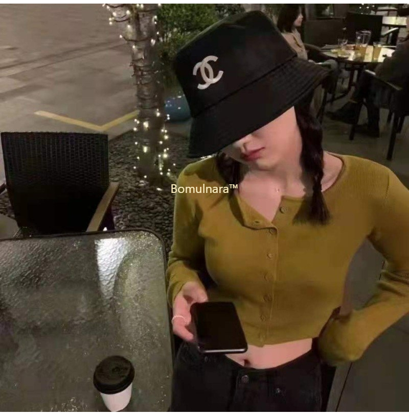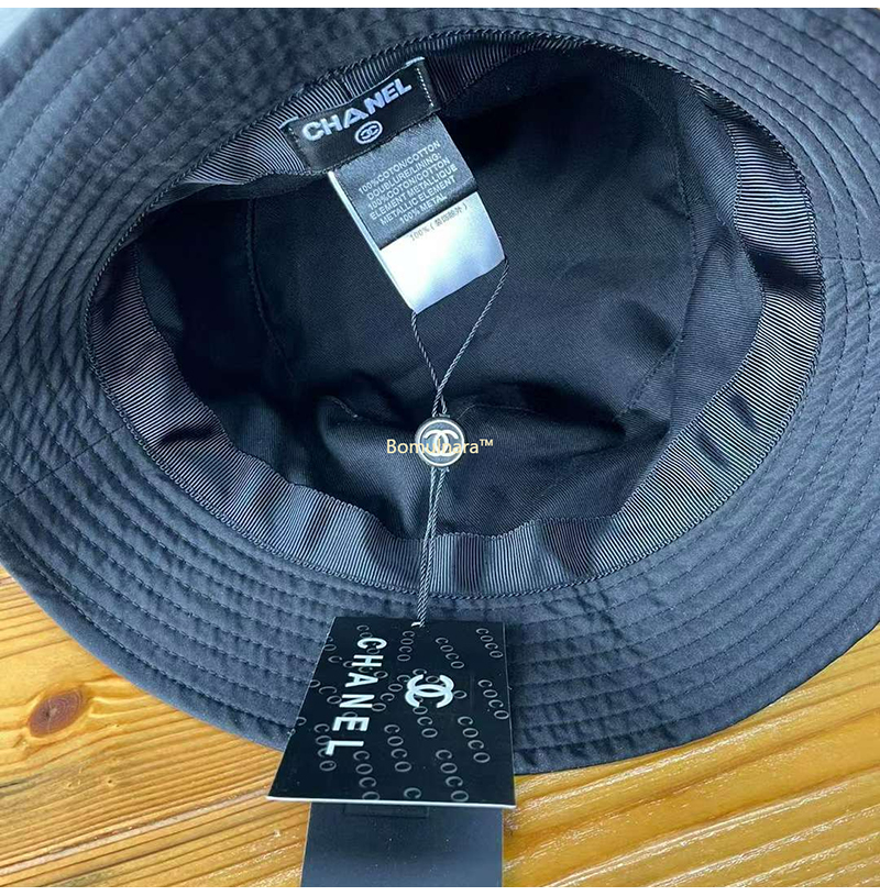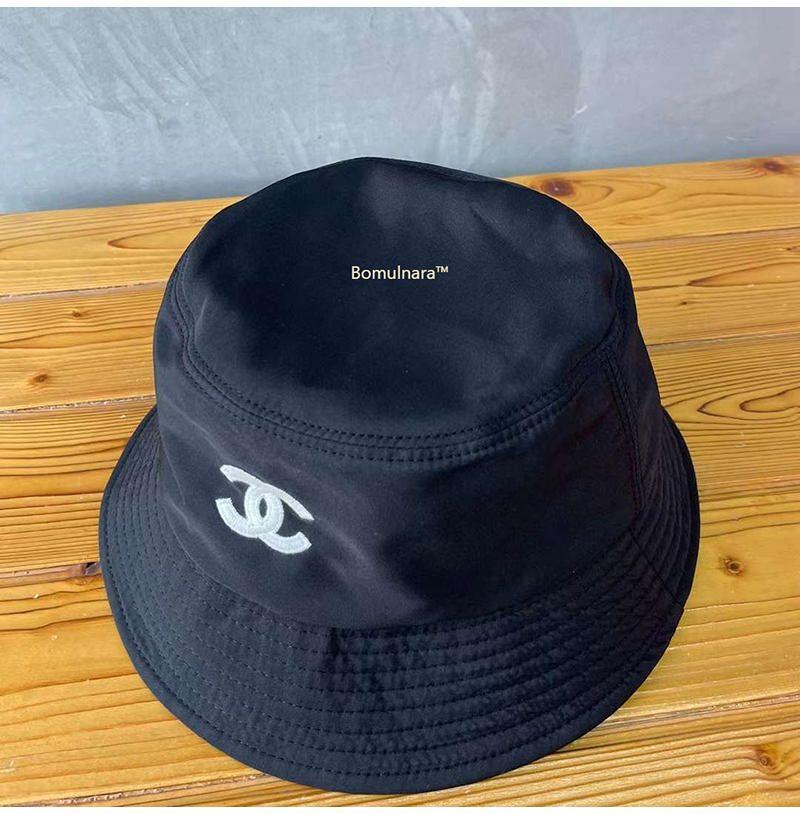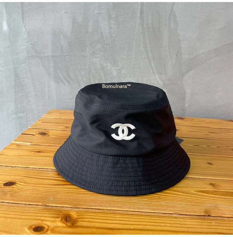 CHANEL-샤넬 블랙 CC 로고 자수 버킷햇 여성용