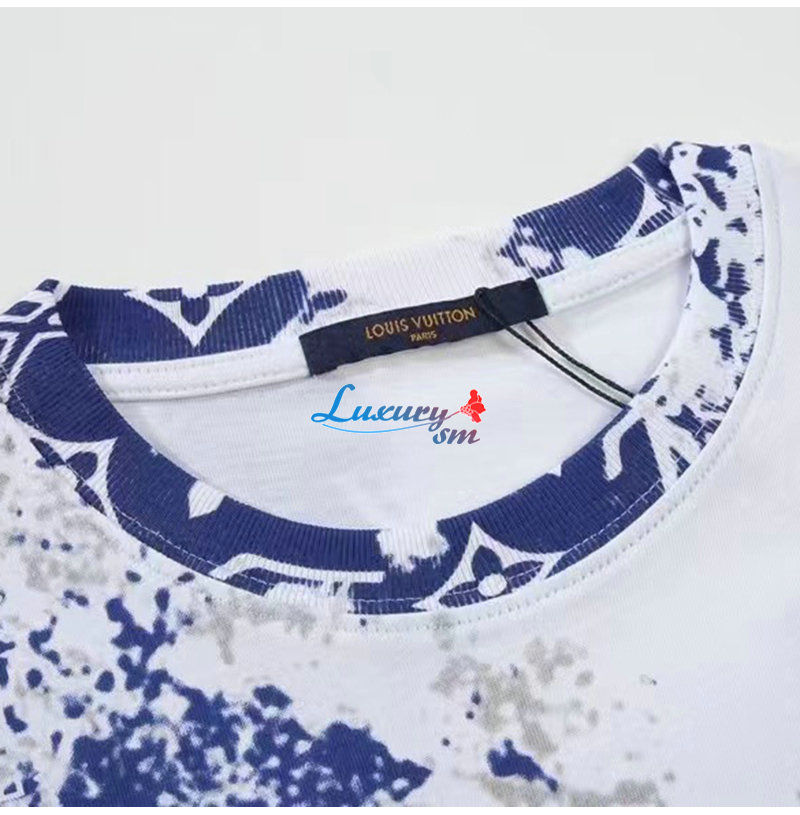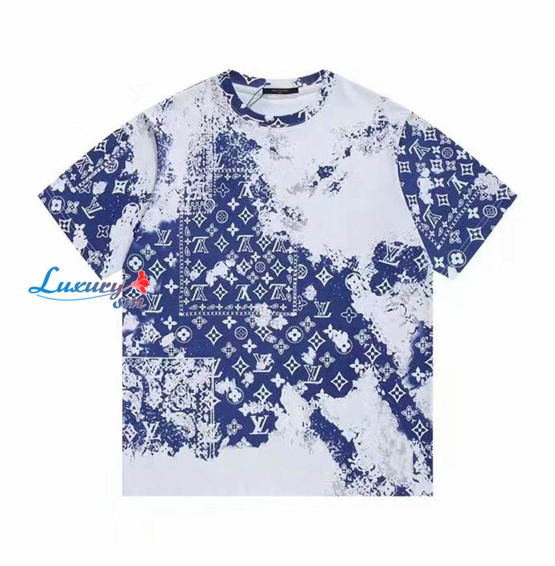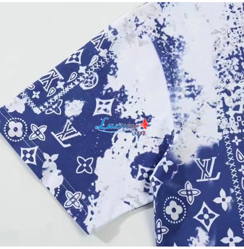 LOUIS VUITTON-03191 루이비통 블루 모노그램 프린트 장식 티셔츠 남여공용