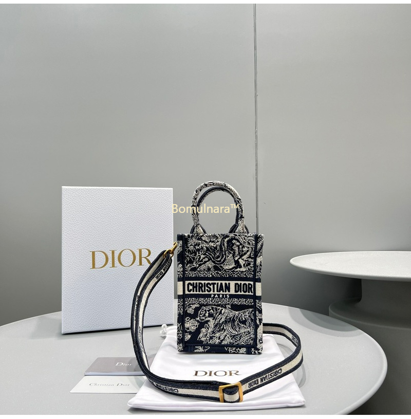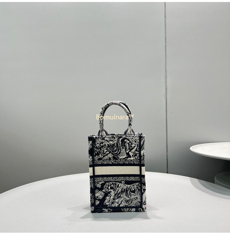 [스페셜오더]DIOR-S5555 디올 블랙&화이트 Micro 격자 자수 BOOK TOTE 미니 휴대폰 백