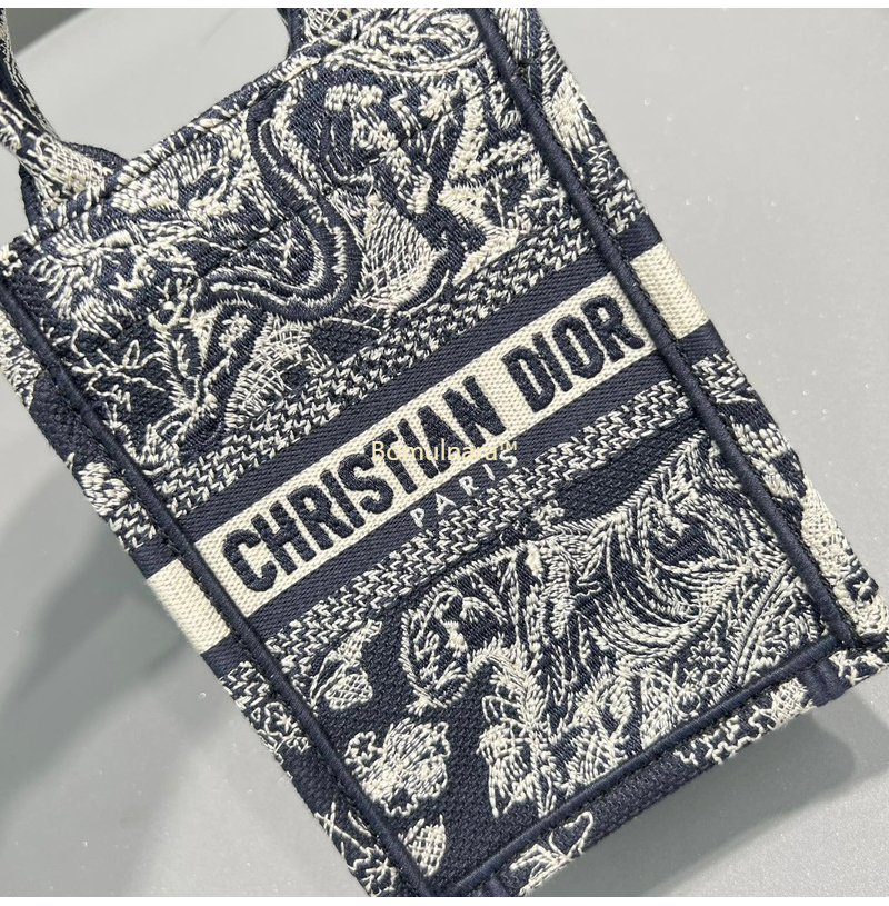 [스페셜오더]DIOR-S5555 디올 블루 Toile de Jouy Reverse 자수 BOOK TOTE 미니 휴대폰 백