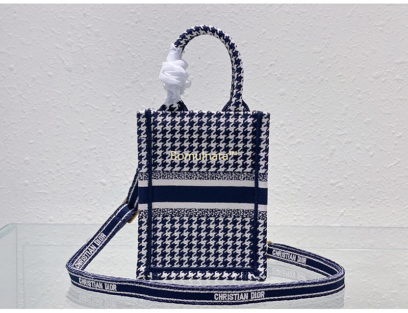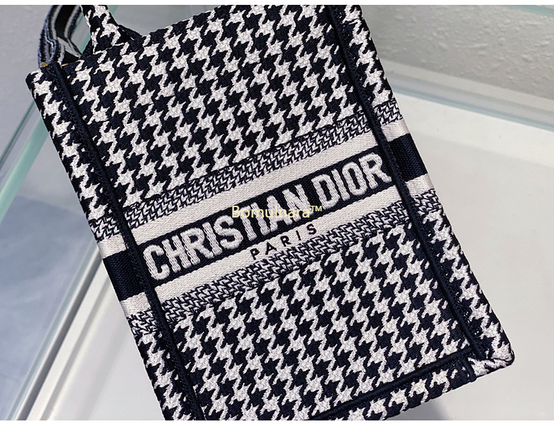 [스페셜오더]DIOR-S5555 디올 블랙&화이트 Micro 격자 자수 BOOK TOTE 미니 휴대폰 백