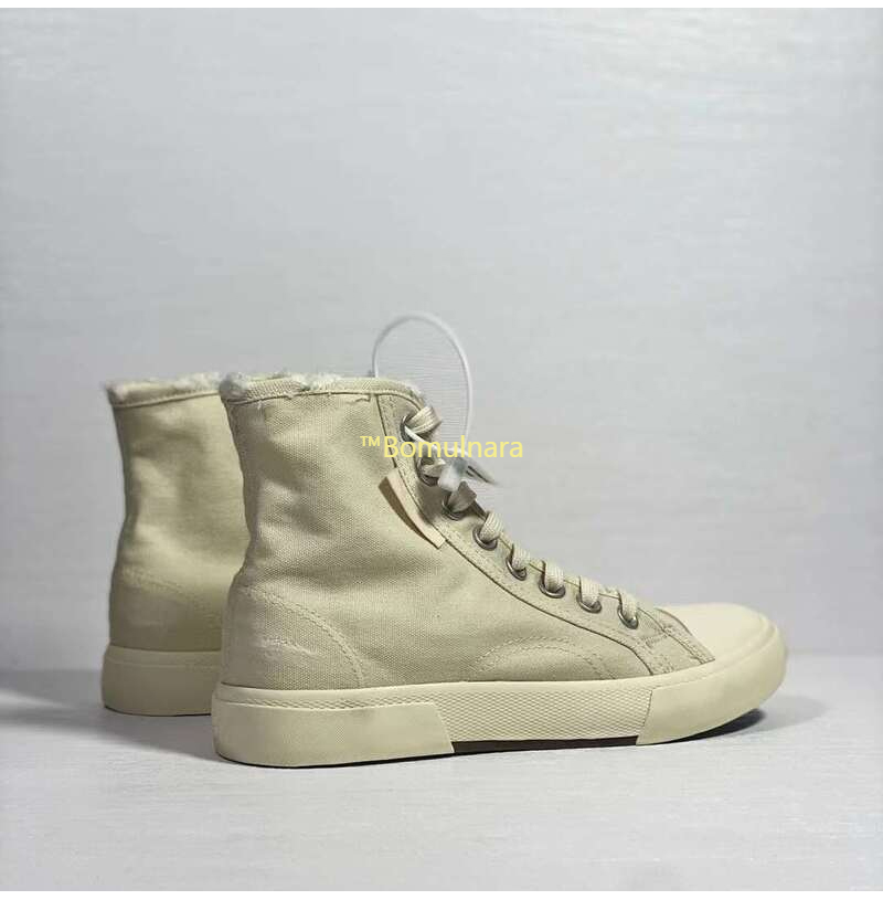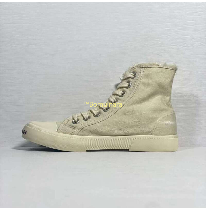 BALENCIAGA-688752 발렌시아가 화이트 디스트로이드 코튼 앤 화이트 러버 Paris High Top 스니커즈