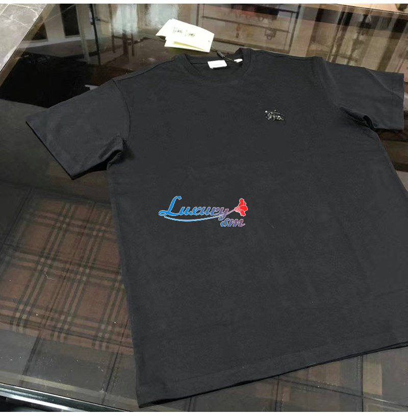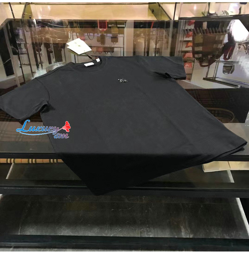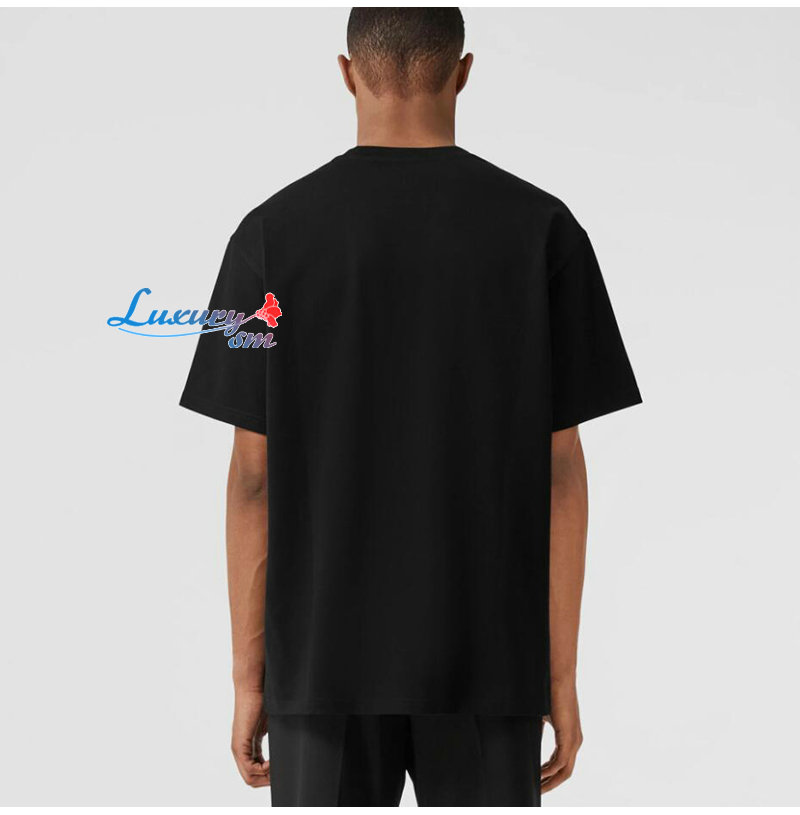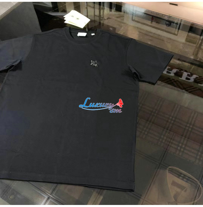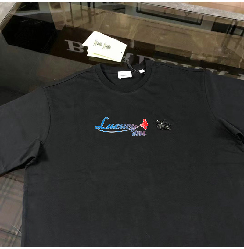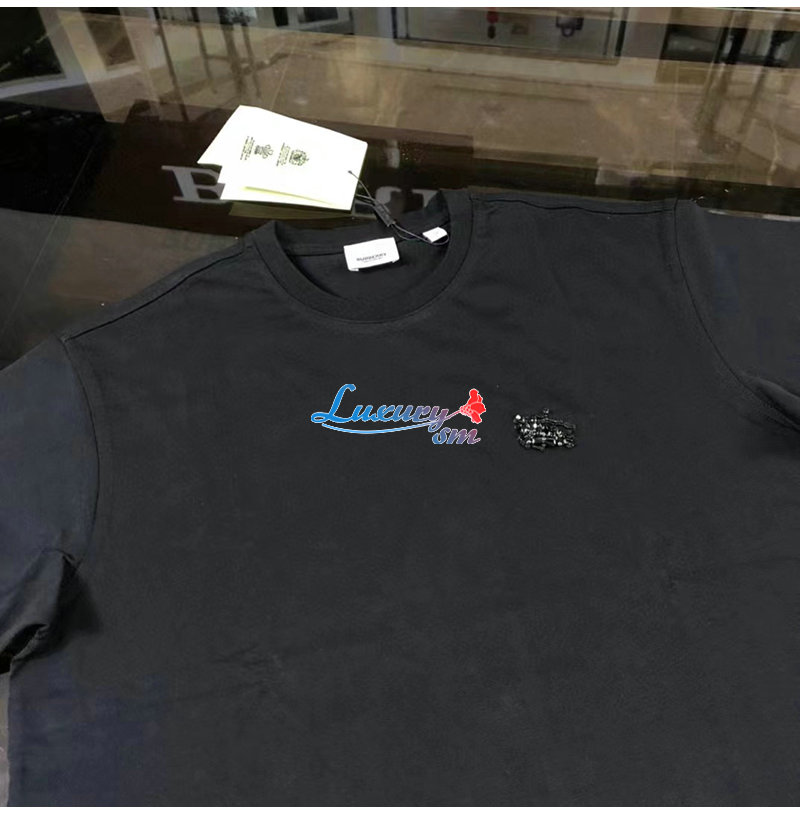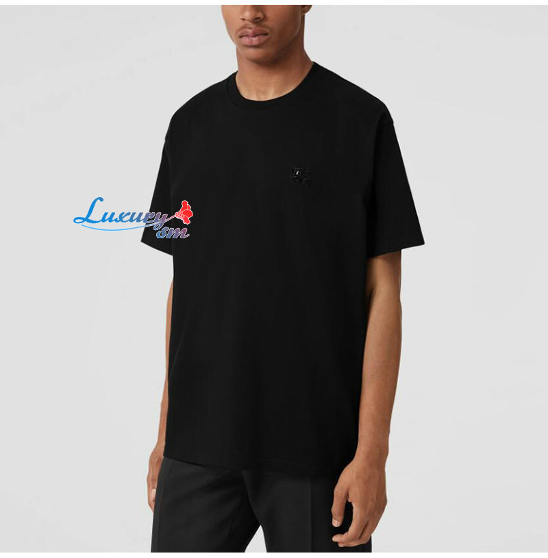BURBERRY-80651391 버버리 블랙 크리스털 EKD 코튼 저지 티셔츠 남성용