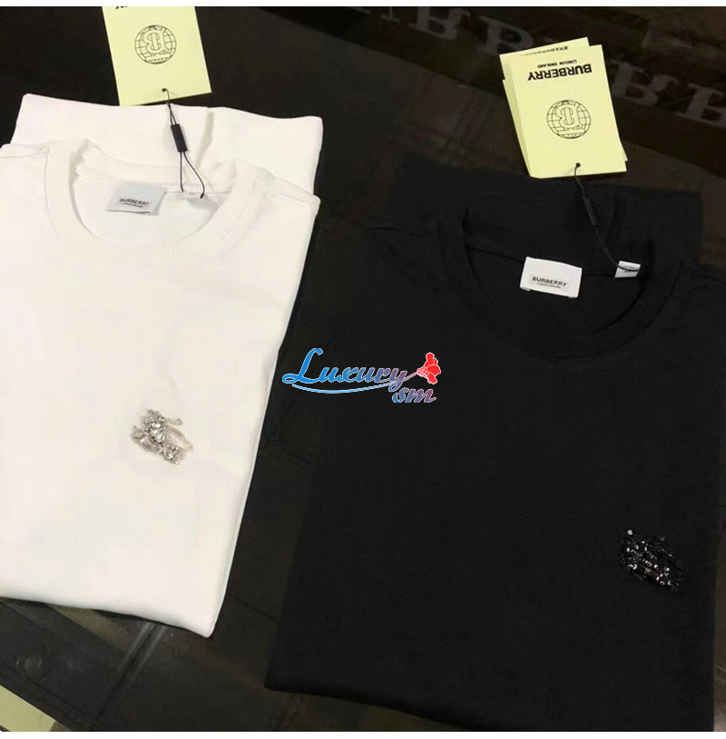 BURBERRY-80643931 버버리 화이트 크리스털 EKD 코튼 저지 티셔츠 남성용 가격 : 140,000원