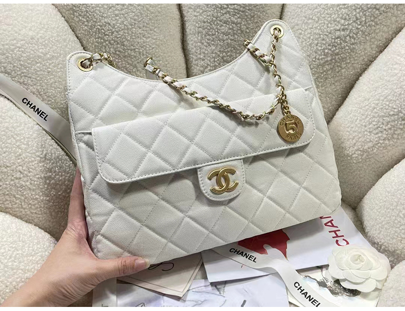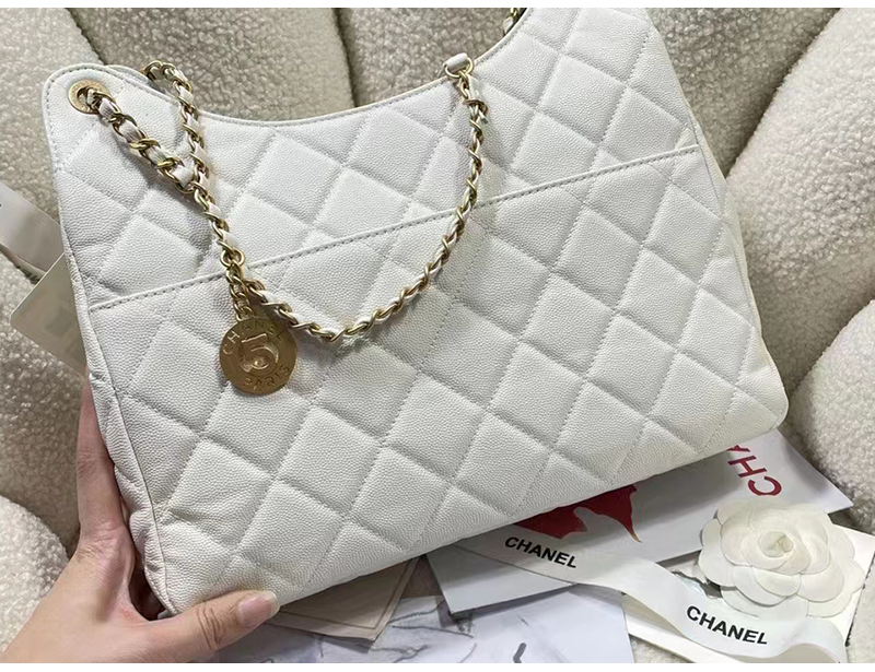 [스페셜오더]CHANEL-AS3693 샤넬 화이트 캐비어 가죽 라지 호보 백