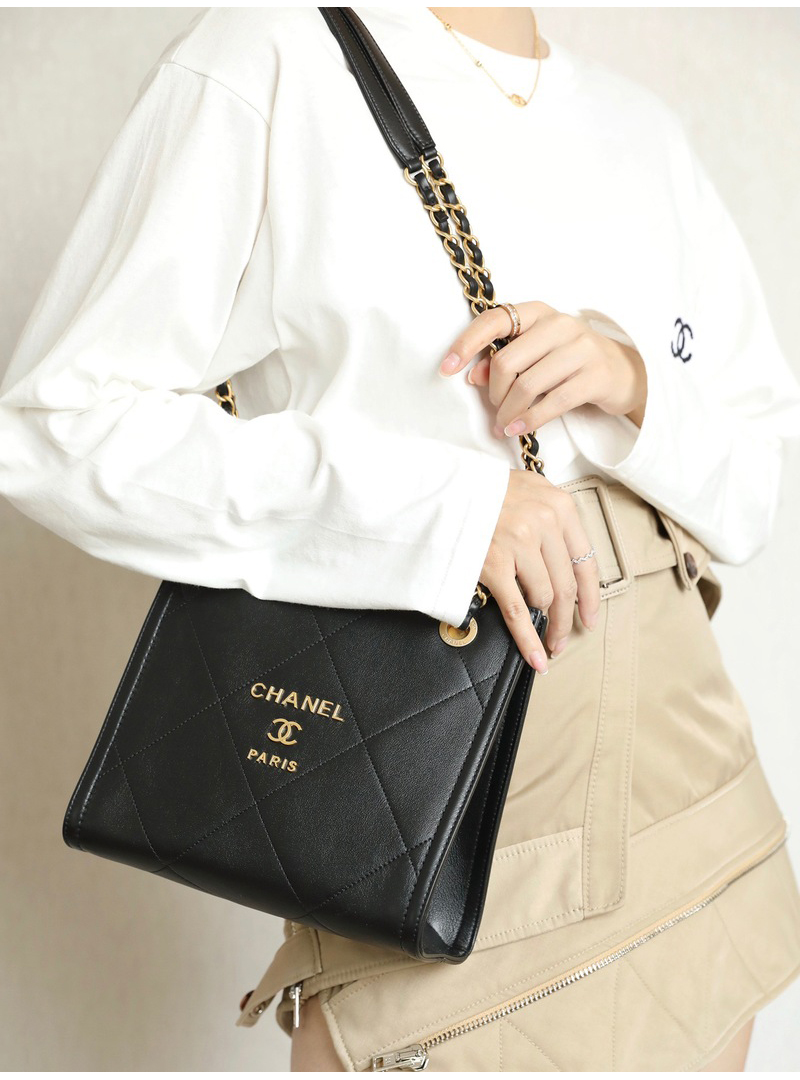 [스페셜오더]CHANEL-AS2750 샤넬 블랙 골드 레터링 로고 체인 미니 쇼핑백