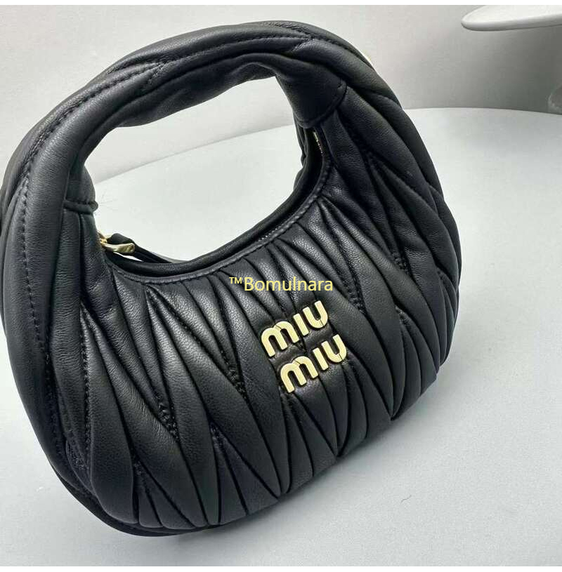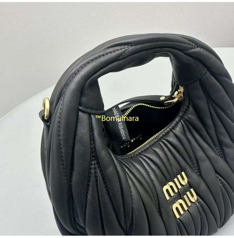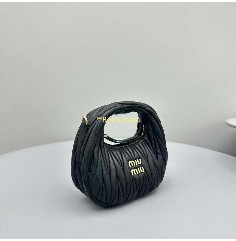 [스페셜오더]MIUMIU-5BP078 미우미우 블랙 완더 마테라쎄 나파 가죽 호보 미니 숄더백