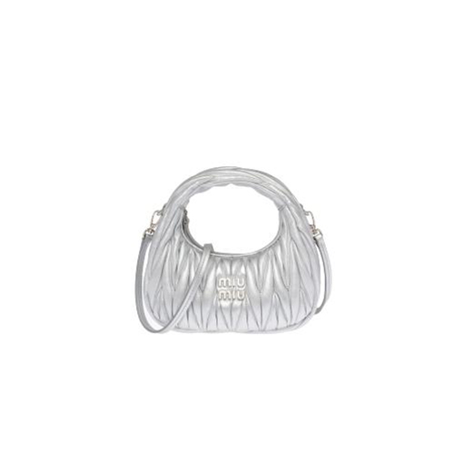 [스페셜오더]MIUMIU-5BP078 미우미우 실버 완더 마테라쎄 나파 가죽 호보 미니 숄더백