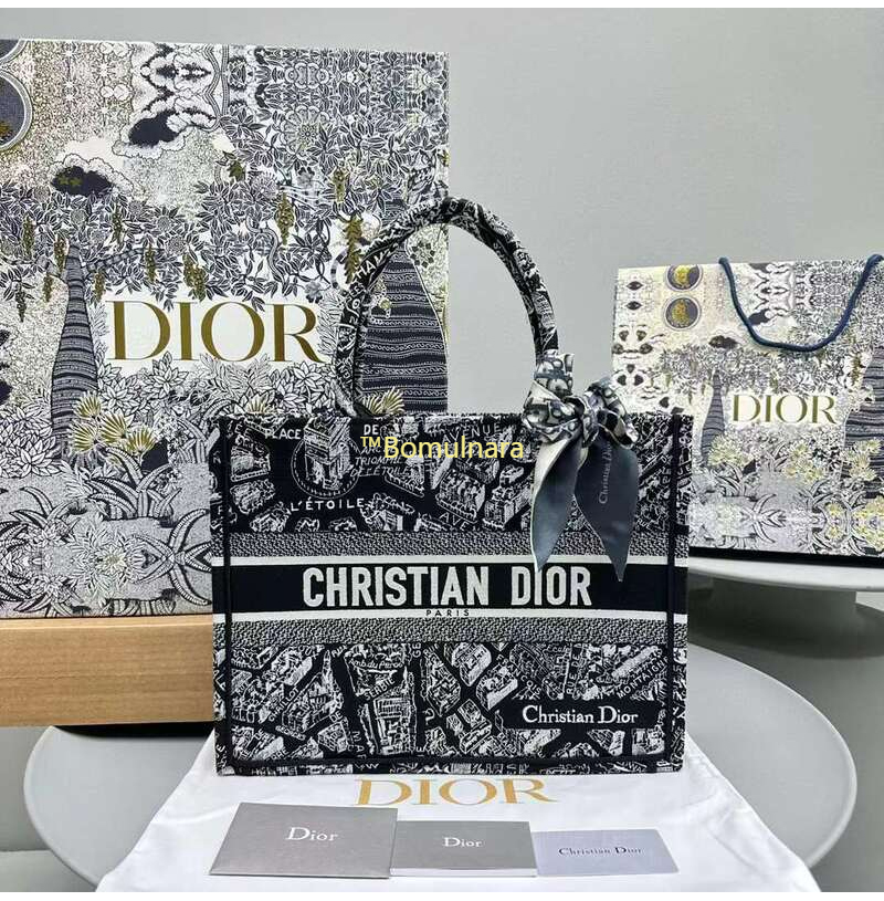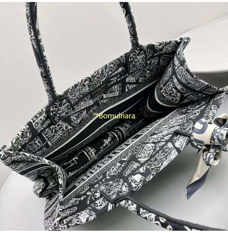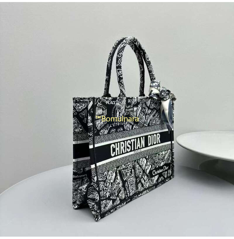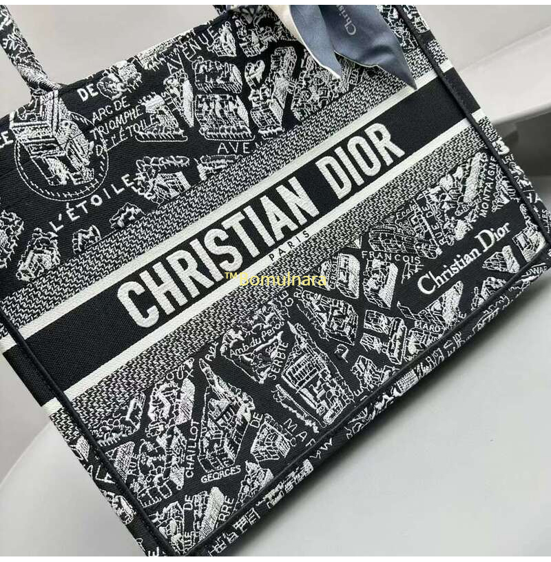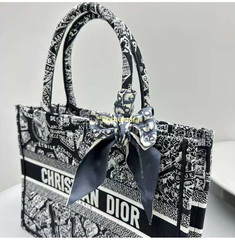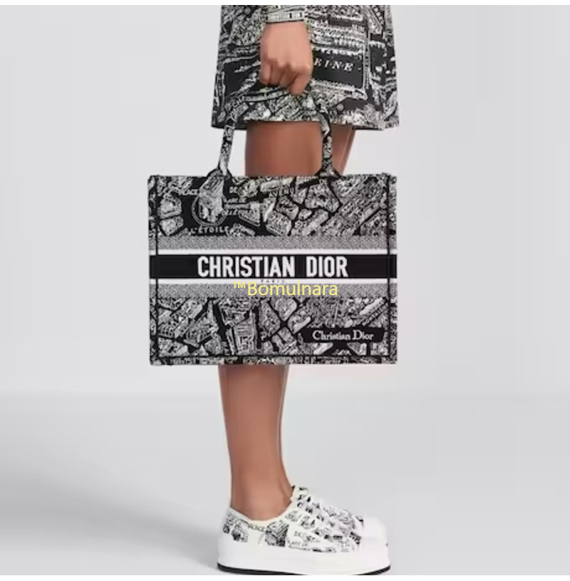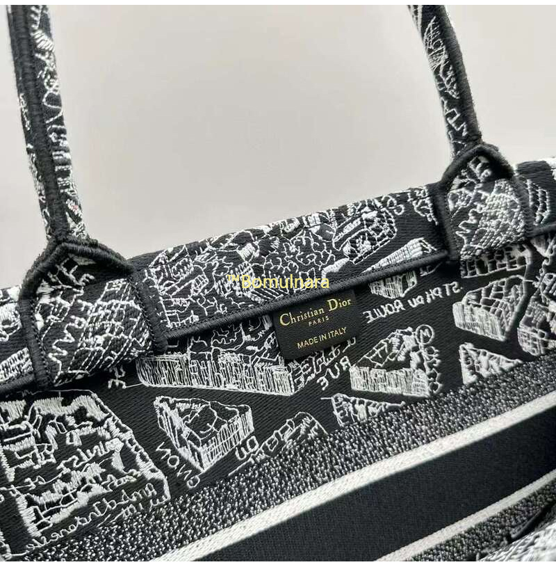[스페셜오더]DIOR-M1296Z 디올 블랙/화이트 Plan de Paris 자수 BOOK TOTE 미디엄 토트 백 36CM