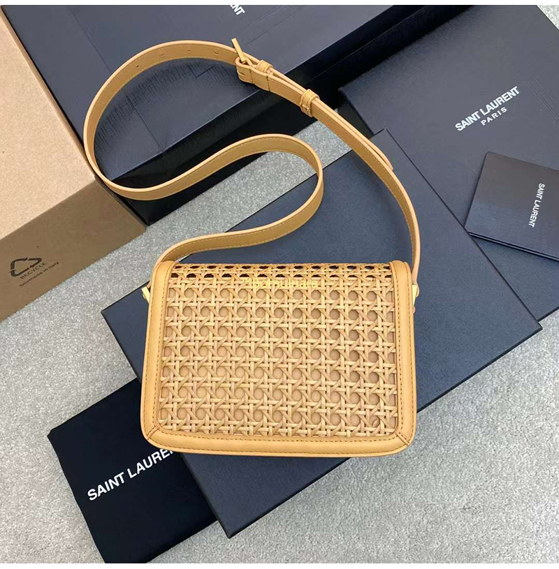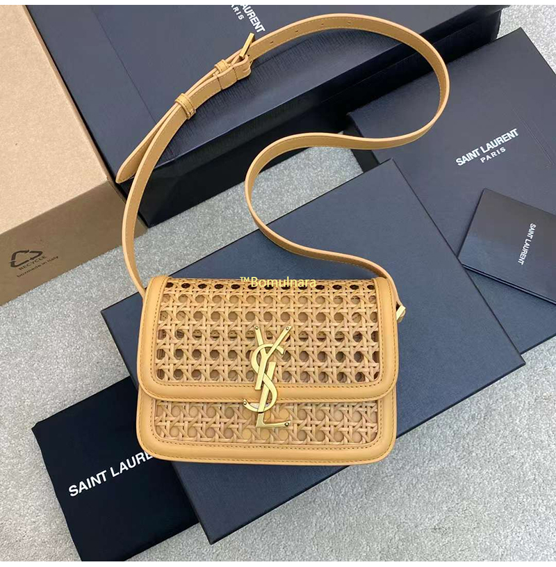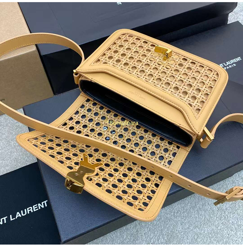 [스페셜오더]SAINT LAURENT-642898 생 로랑 브라운 케인워크 베지터블 태닝 가죽 솔페리노 미디엄 사첼백 23CM