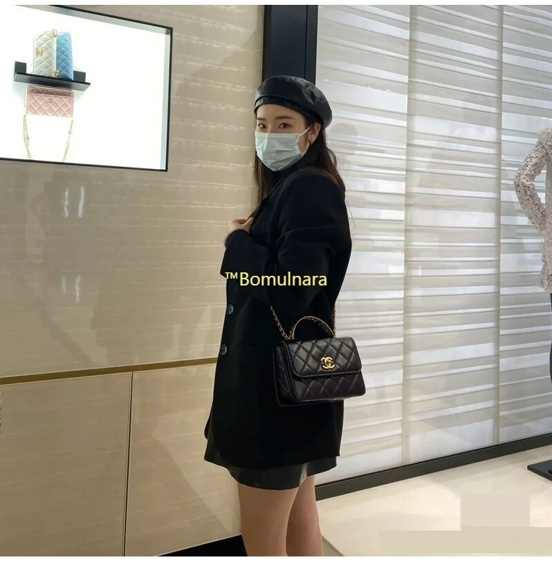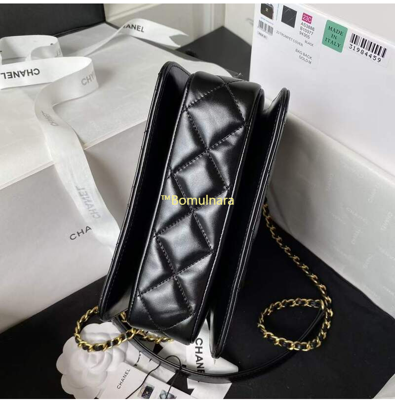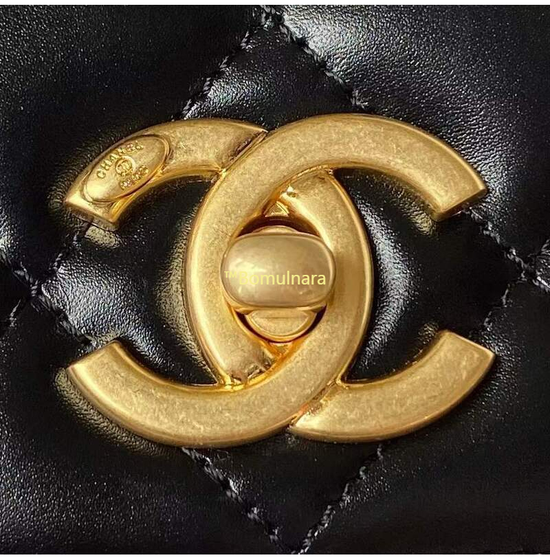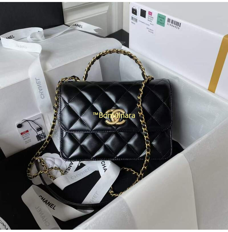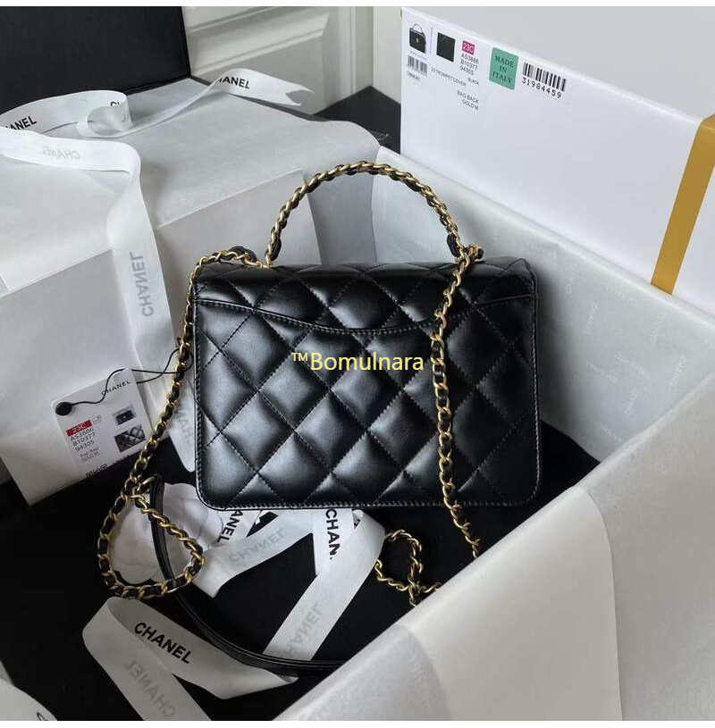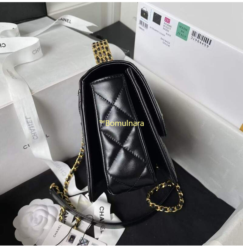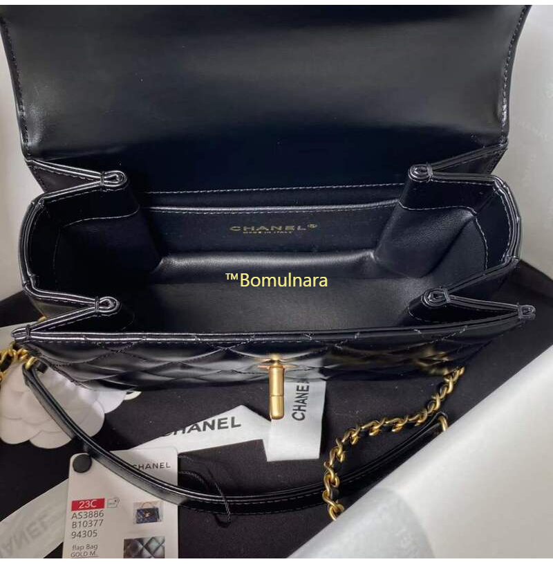 [스페셜오더]CHANEL-AS3886 샤넬 블랙 샤이니 카프스킨 골드 핸들 장식 미니 플랩 백