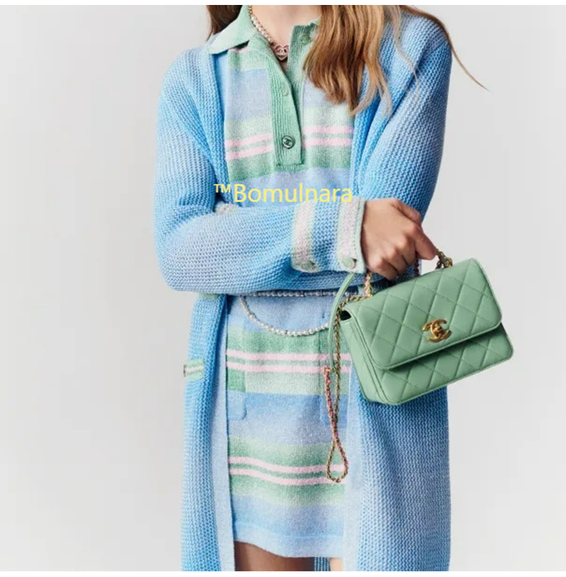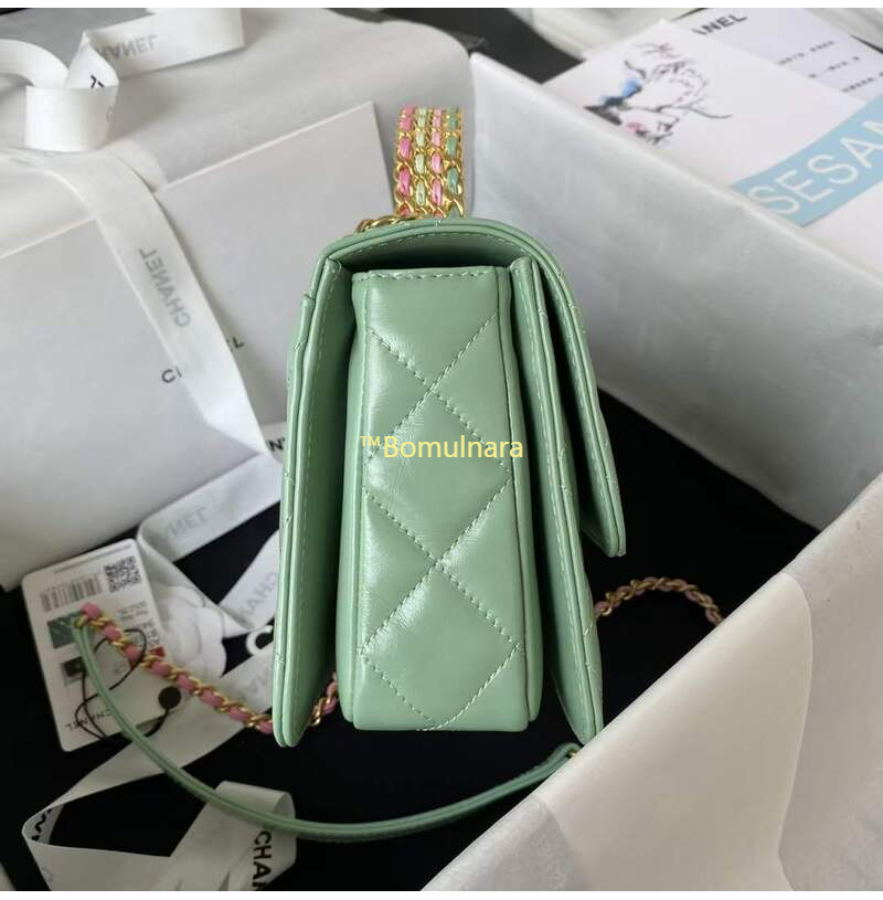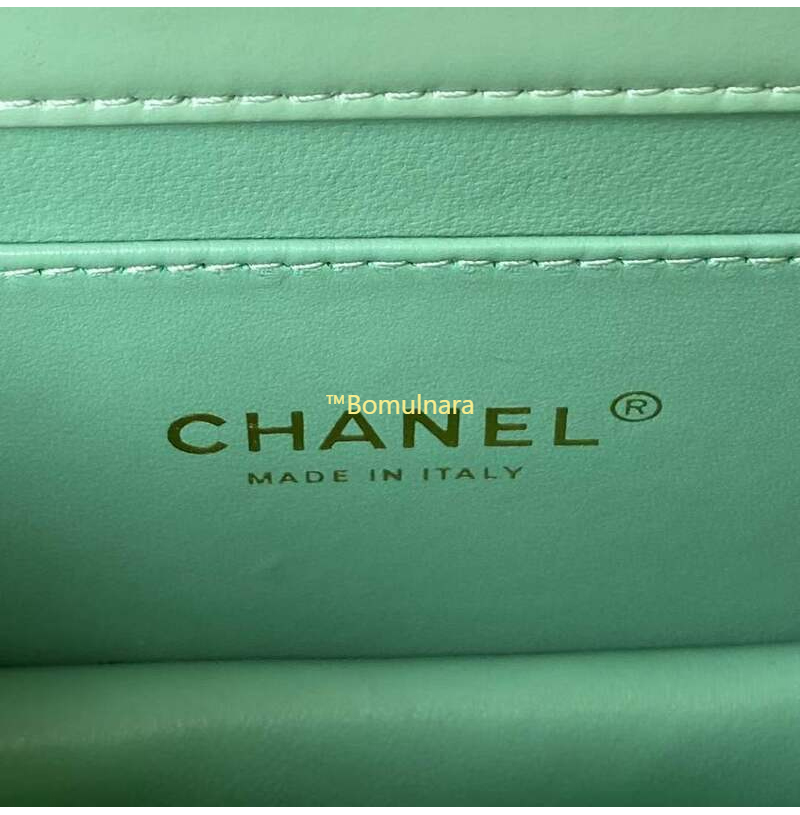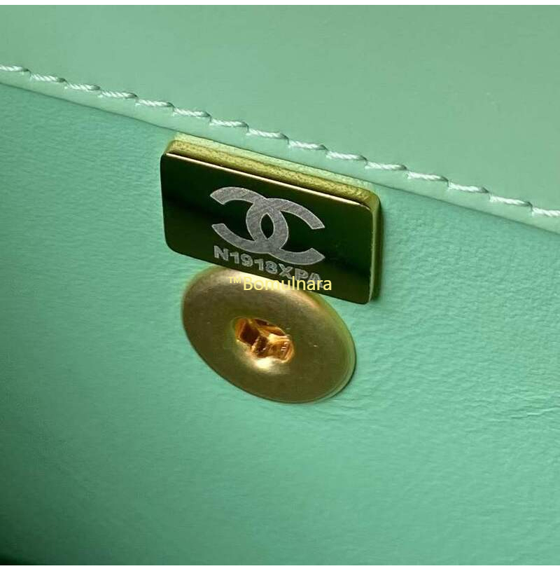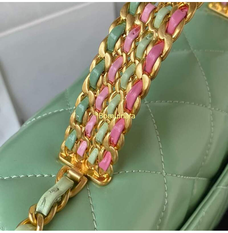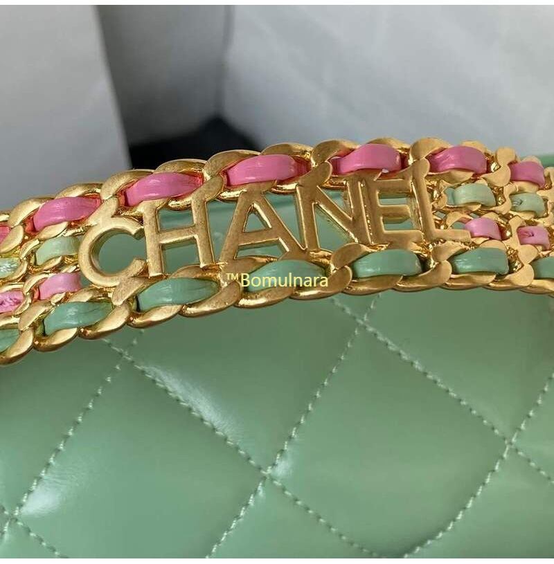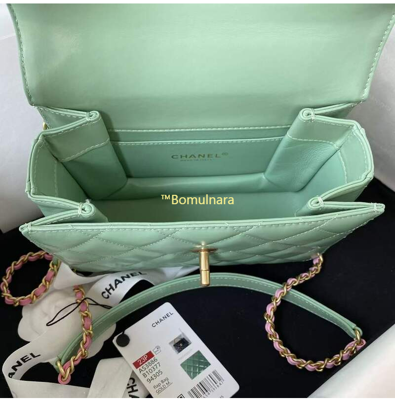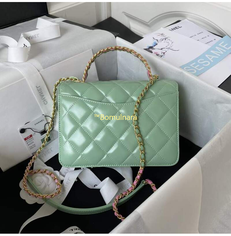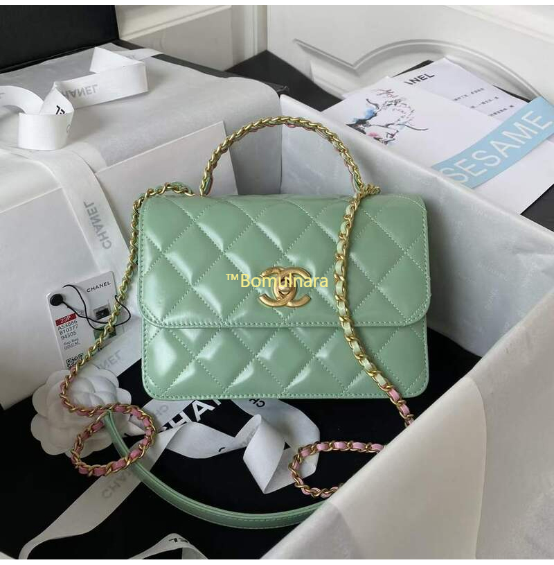 [스페셜오더]CHANEL-AS3886 샤넬 라이트 그린 샤이니 카프스킨 골드 핸들 장식 미니 플랩 백