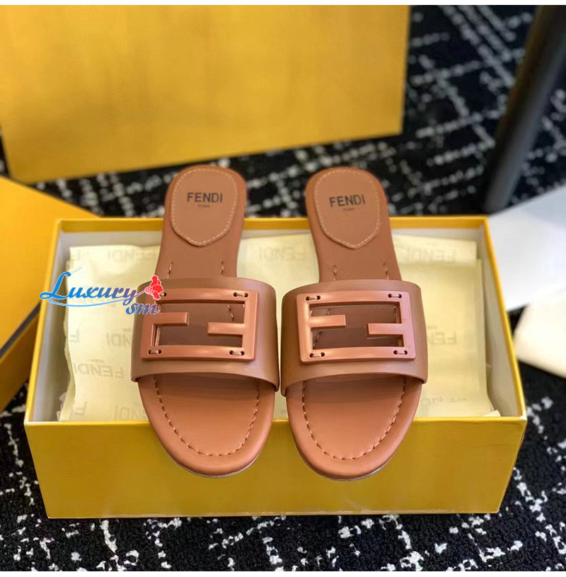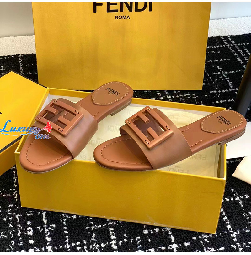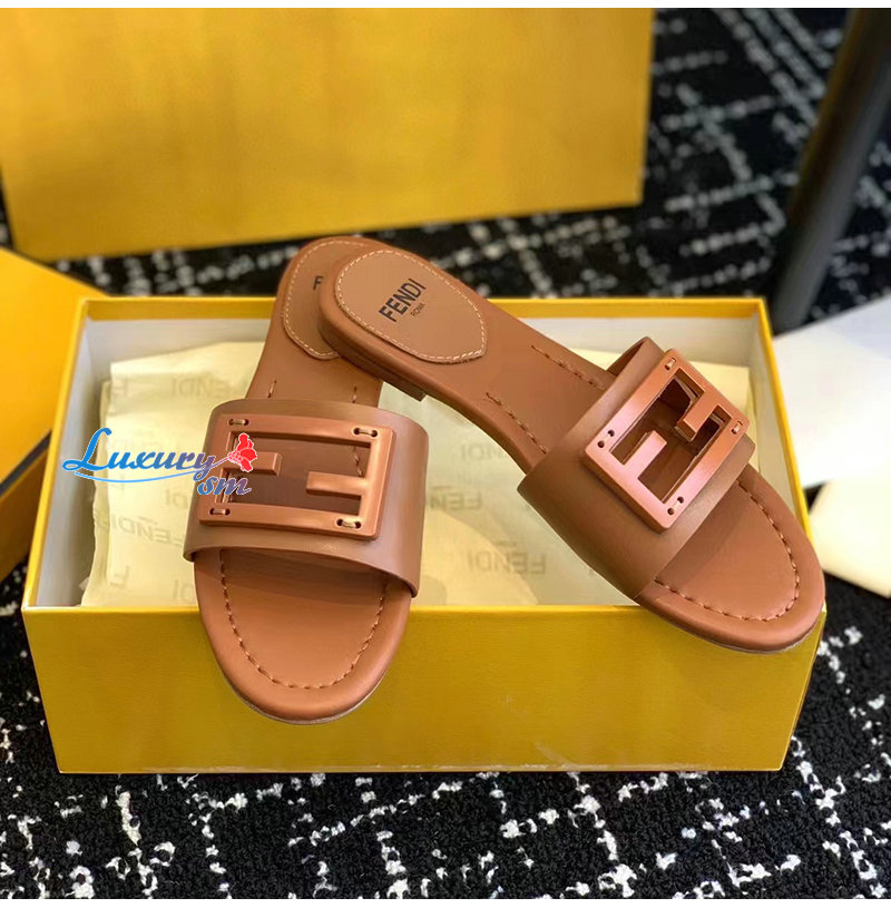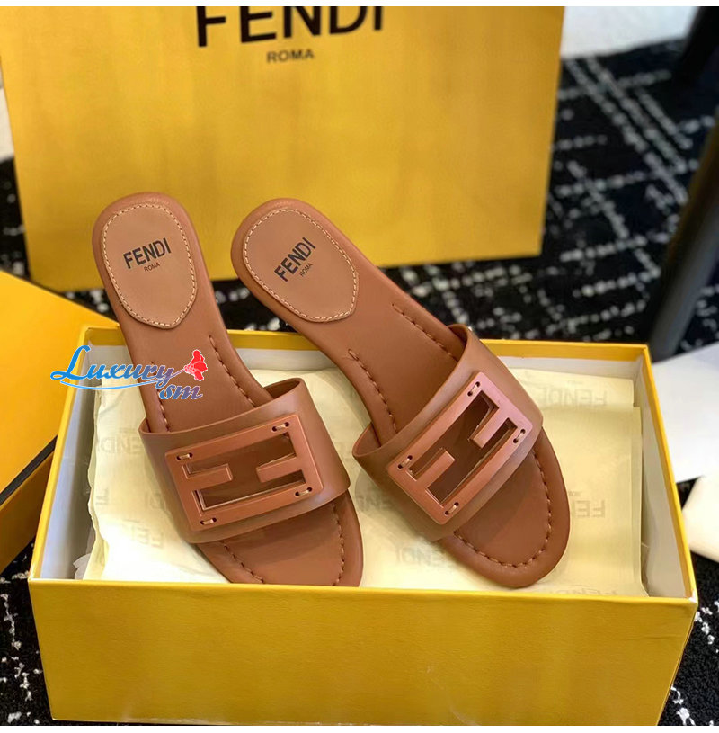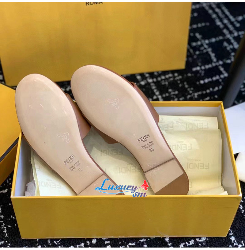 FENDI-8R8136 펜디 브라운 가죽 바게트 슬라이드 여성용