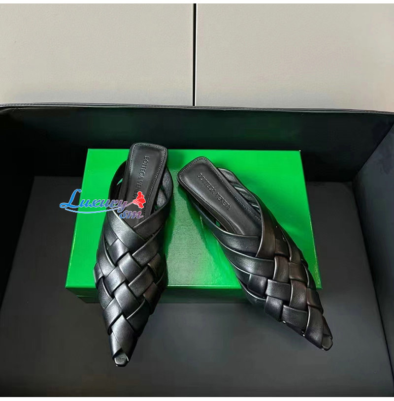 BOTTEGA VENETA-739891 보테가 베네타 블랙 램스킨 알피 슬리퍼 여성용
