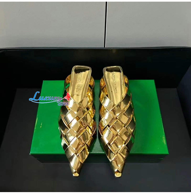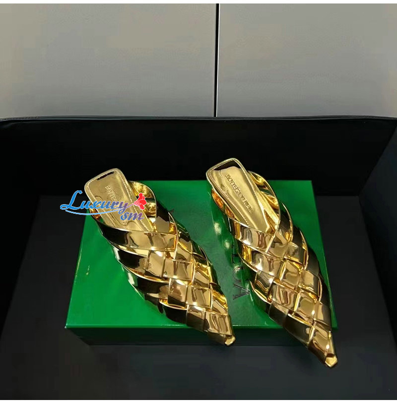 BOTTEGA VENETA-739891 보테가 베네타 골드 램스킨 알피 슬리퍼 여성용