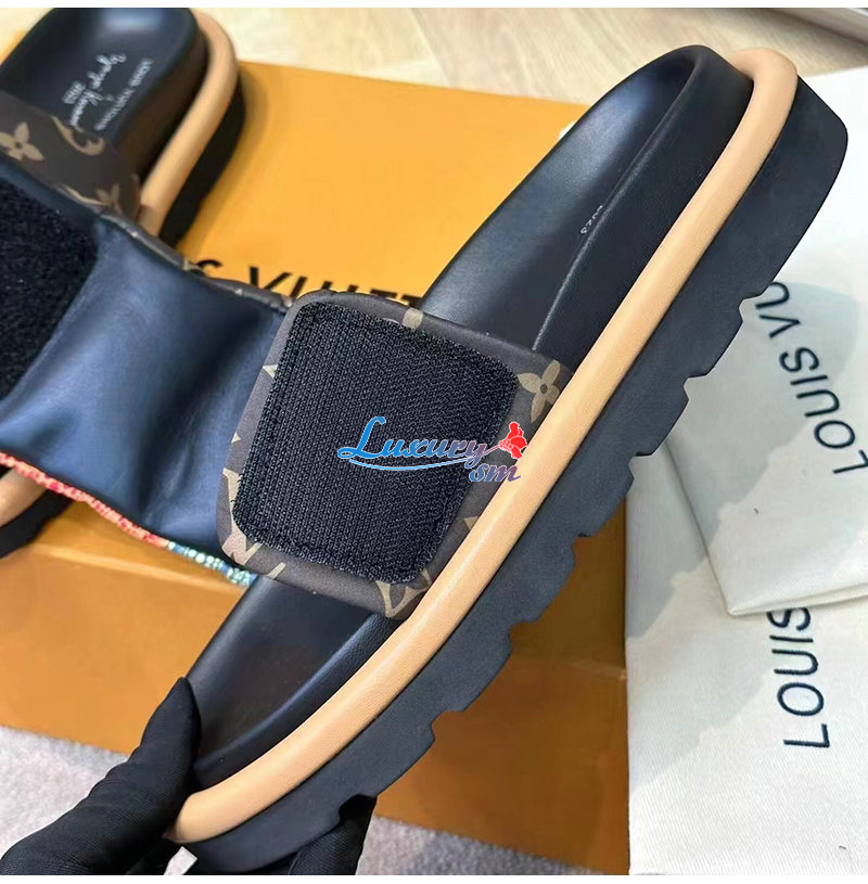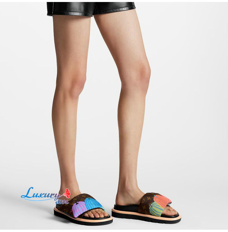 이는 LV x YK 풀 필로우 플랫 컴포트 뮬.
