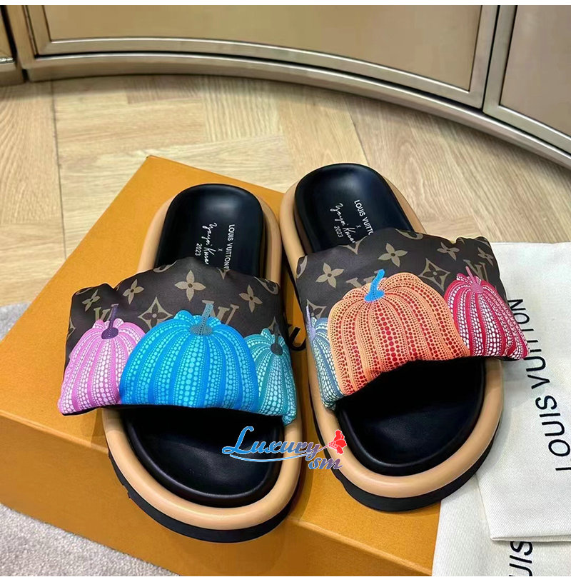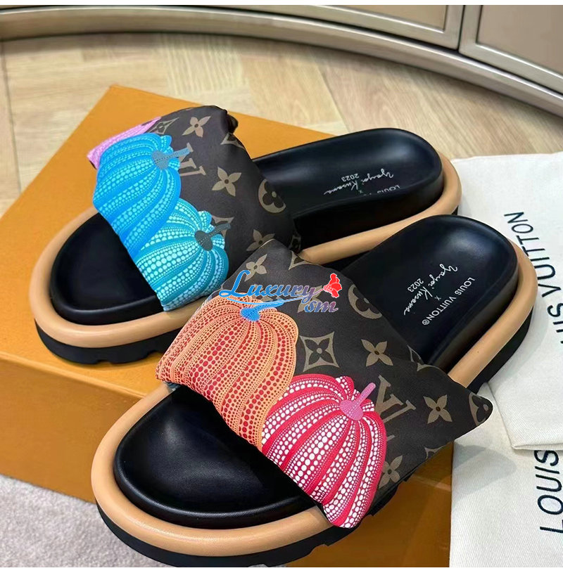 LOUIS VUITTON-1ABD91 루이비통 모노그램 LV x YK 풀 필로우 플랫 컴포트 뮬 여성용
