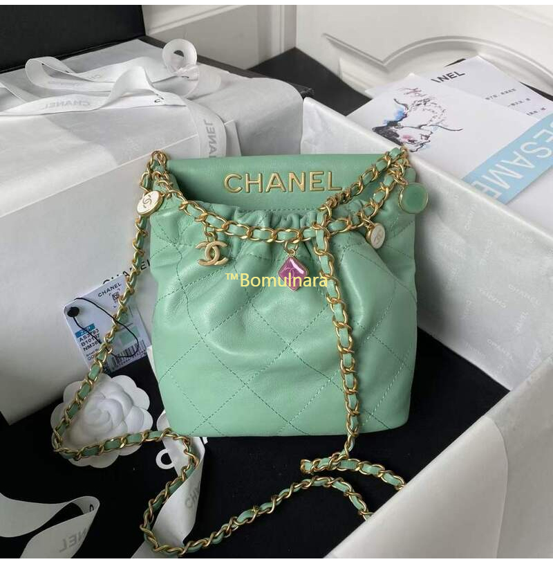 [스페셜오더]CHANEL-AS3793 샤넬 라이트 그린 램스킨 골드메탈 스몰 버킷백